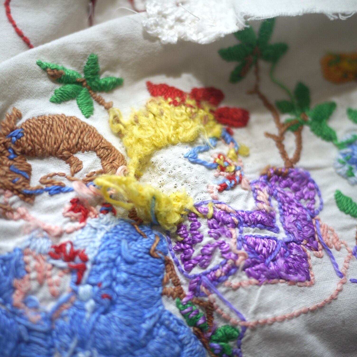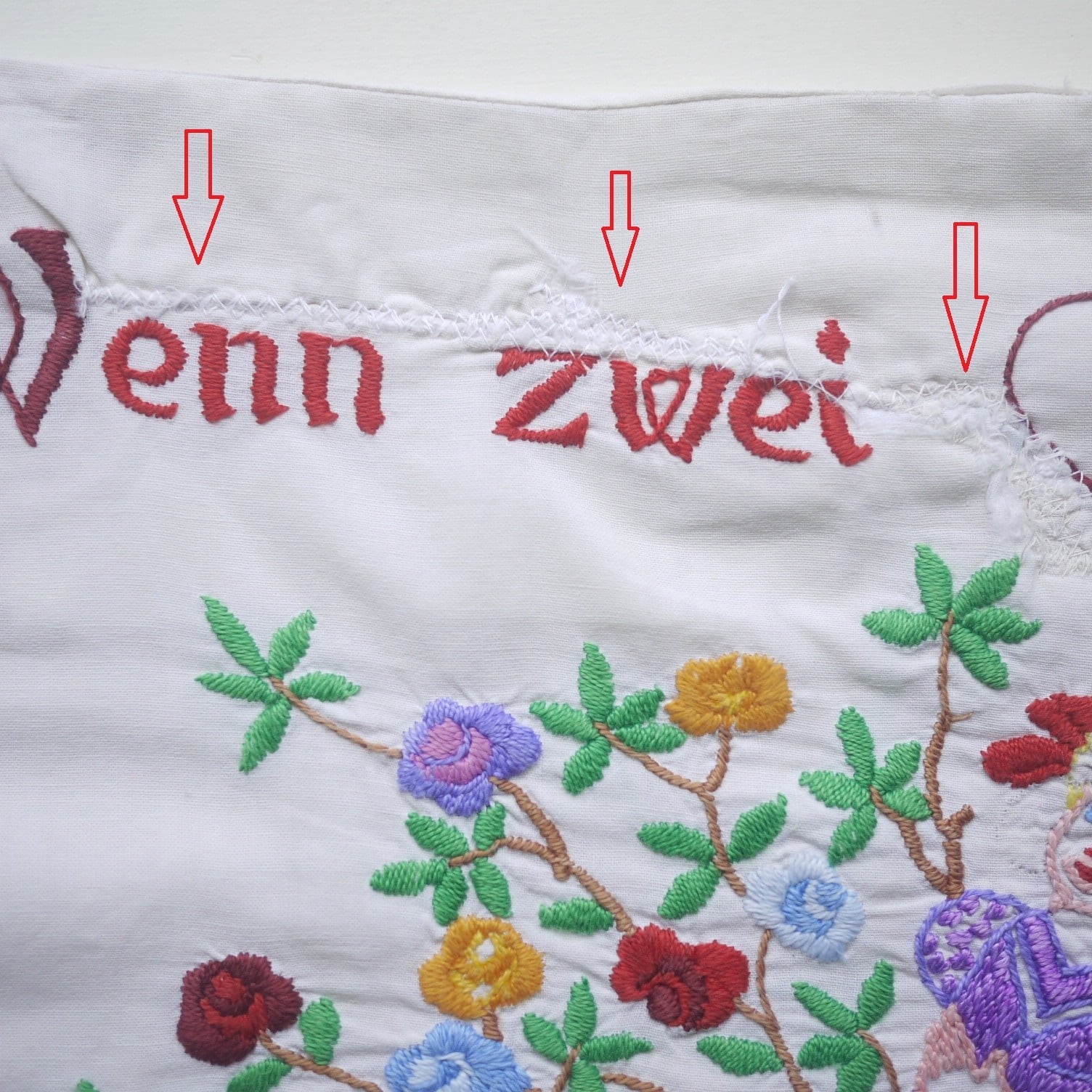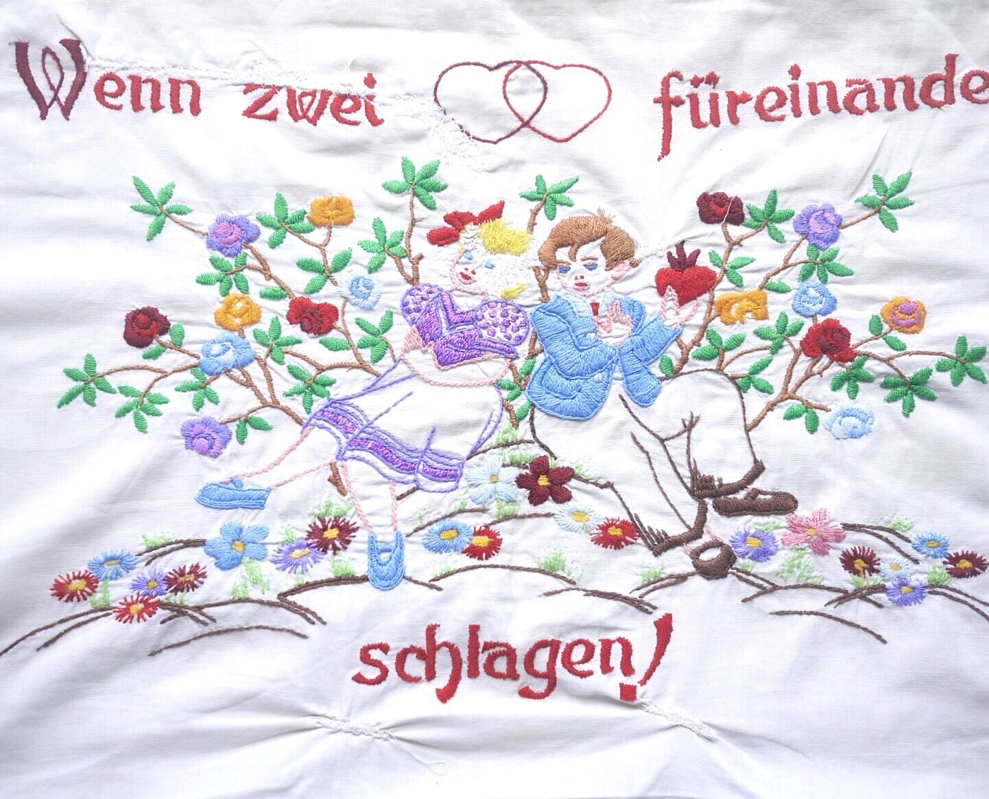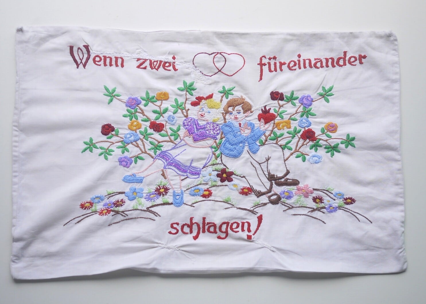 ノスタルジック刺繍 ピローケース 花と二人 ドイツヴィンテージ 難あり