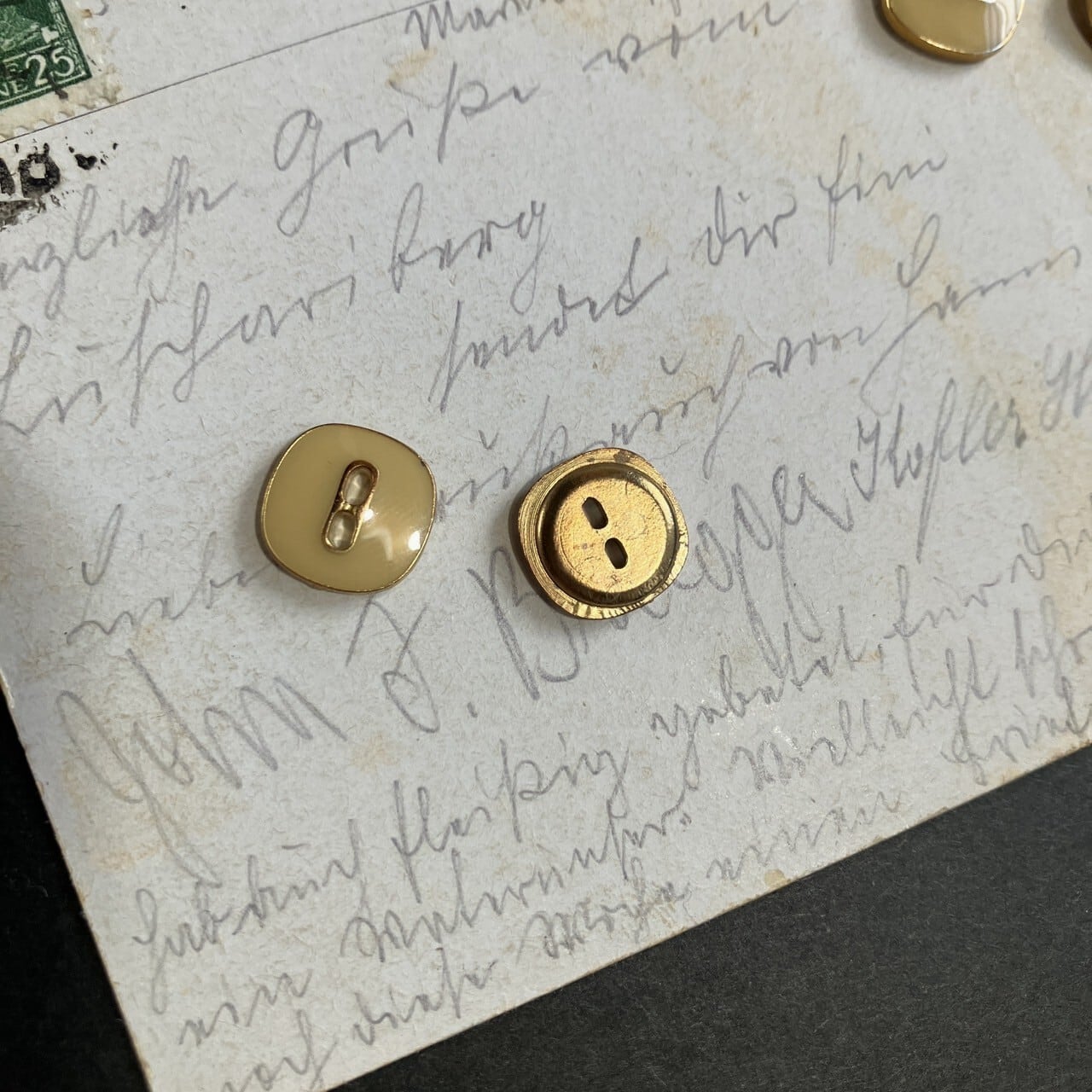 レトロなデザインの小さなボタンです。