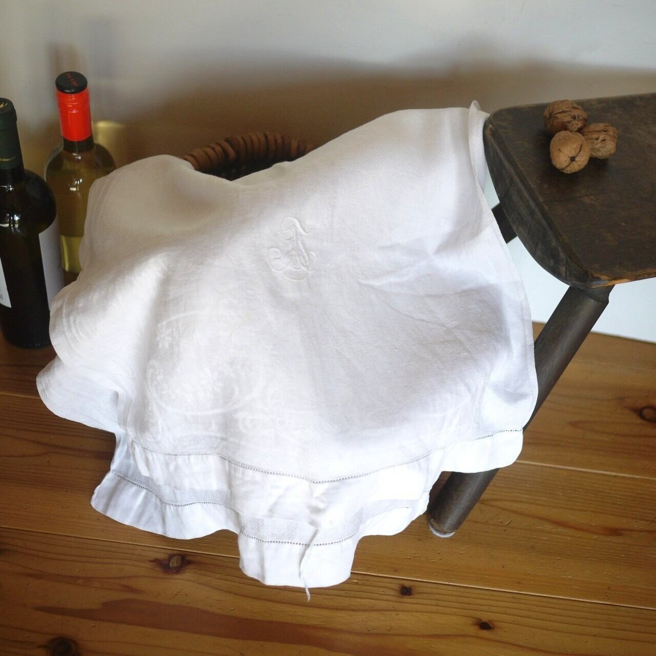 キッチンクロス 白糸刺繍イニシャル ティータオル フランス