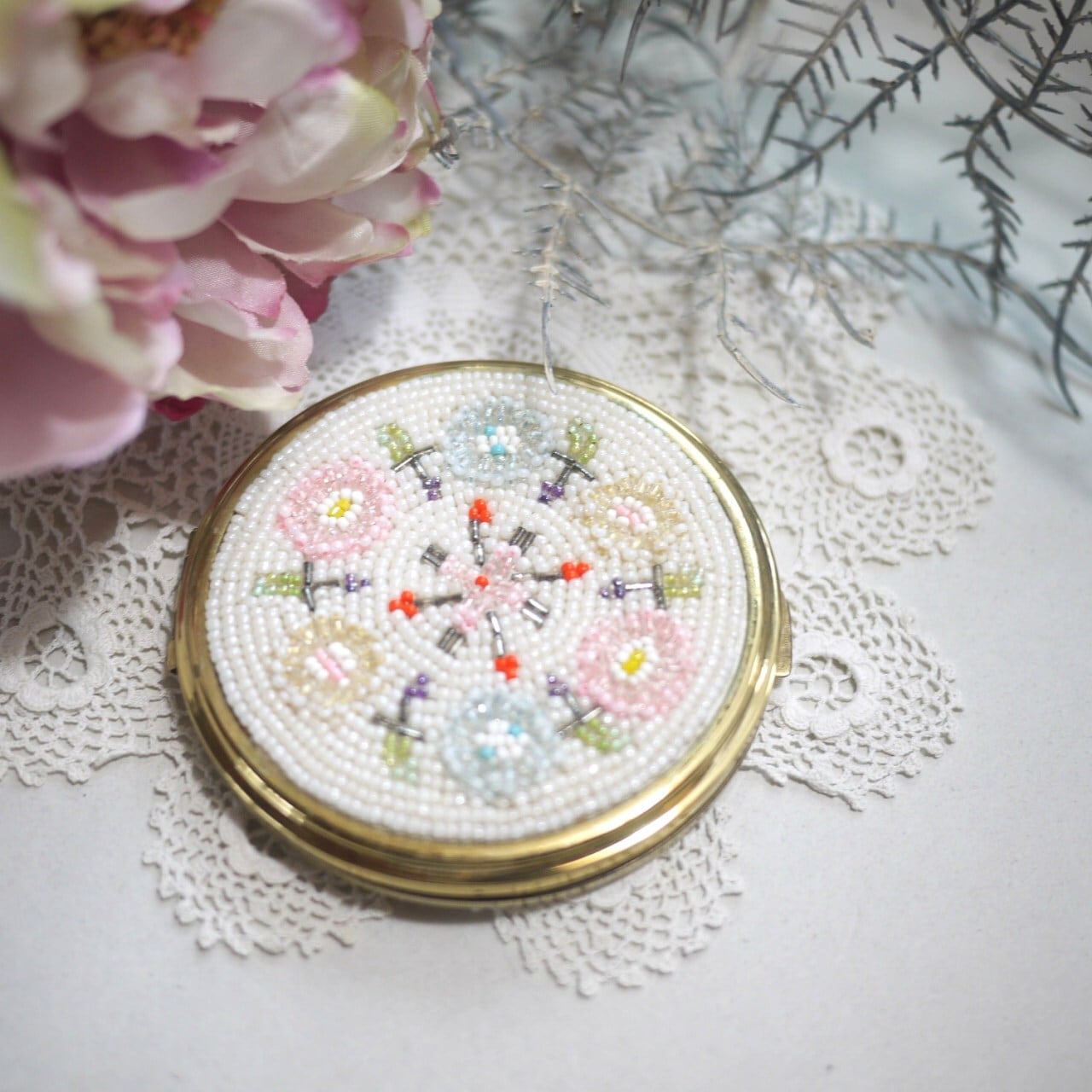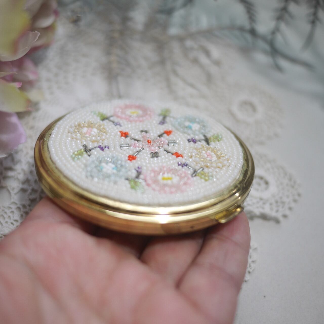 ビーズ刺繍コンパクト パウダーケース 手鏡 日本