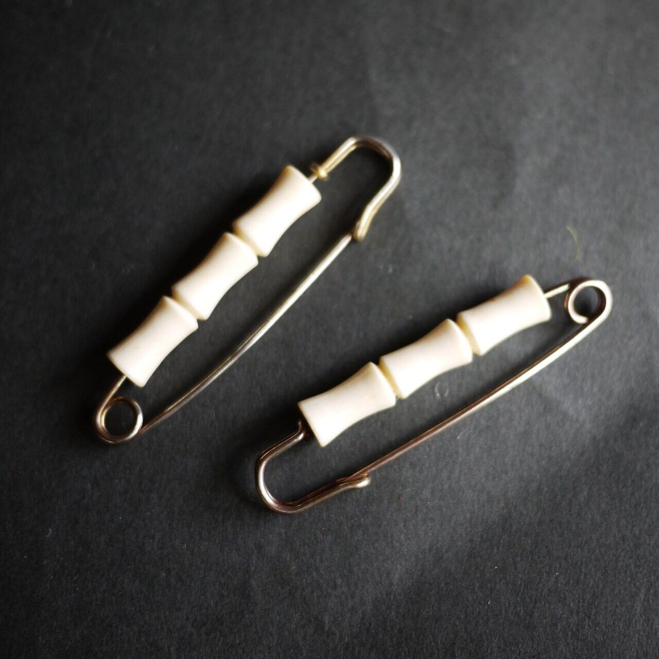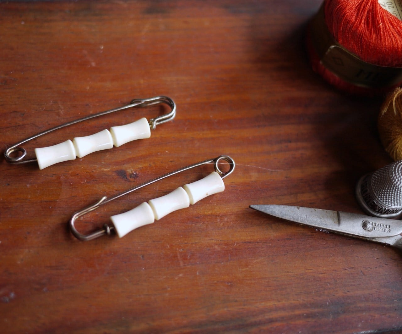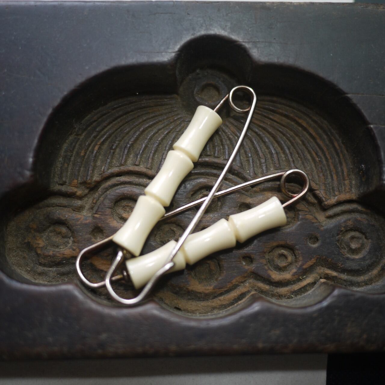 骨、スケルトンを思わせるデザインのプラスチックを使った安全ピン