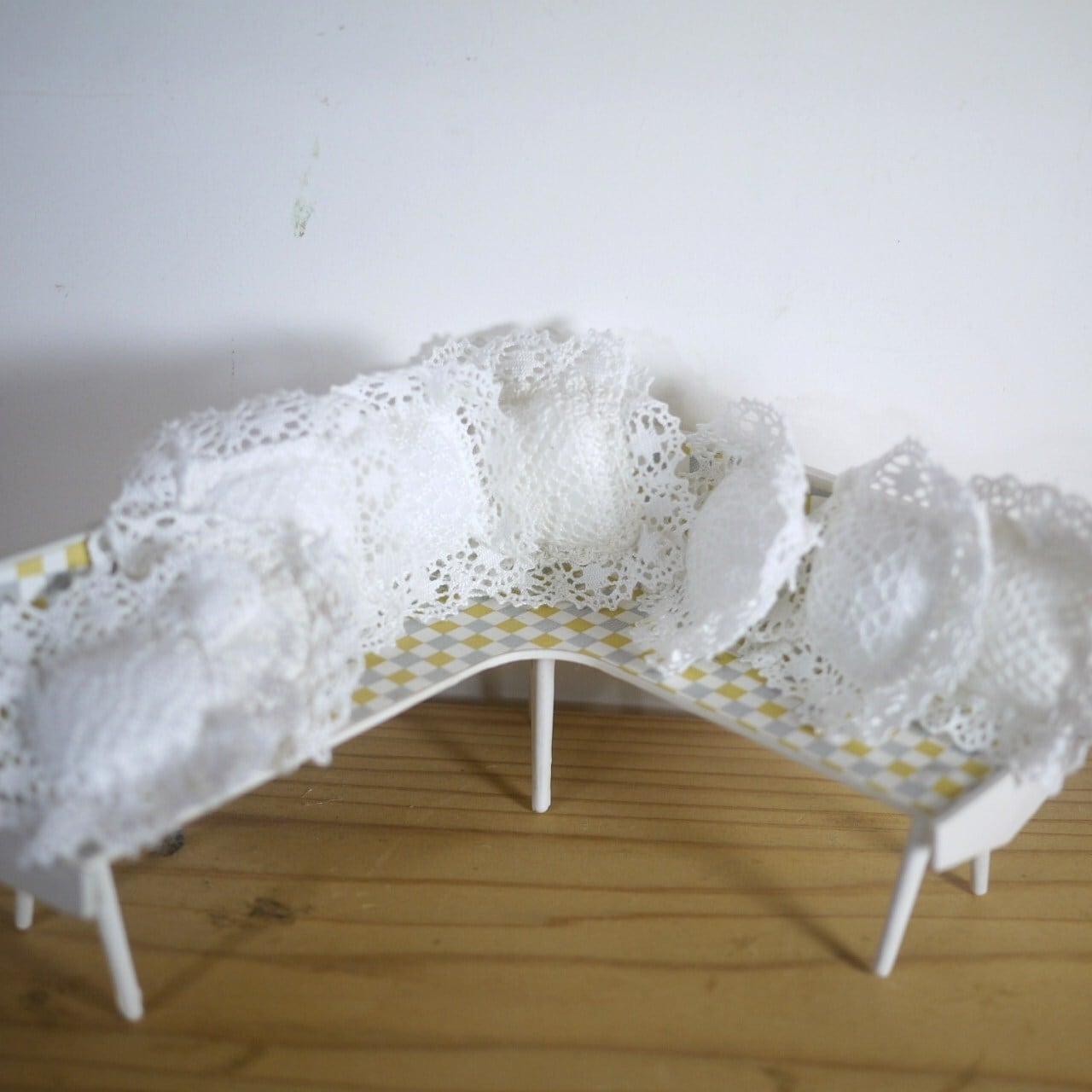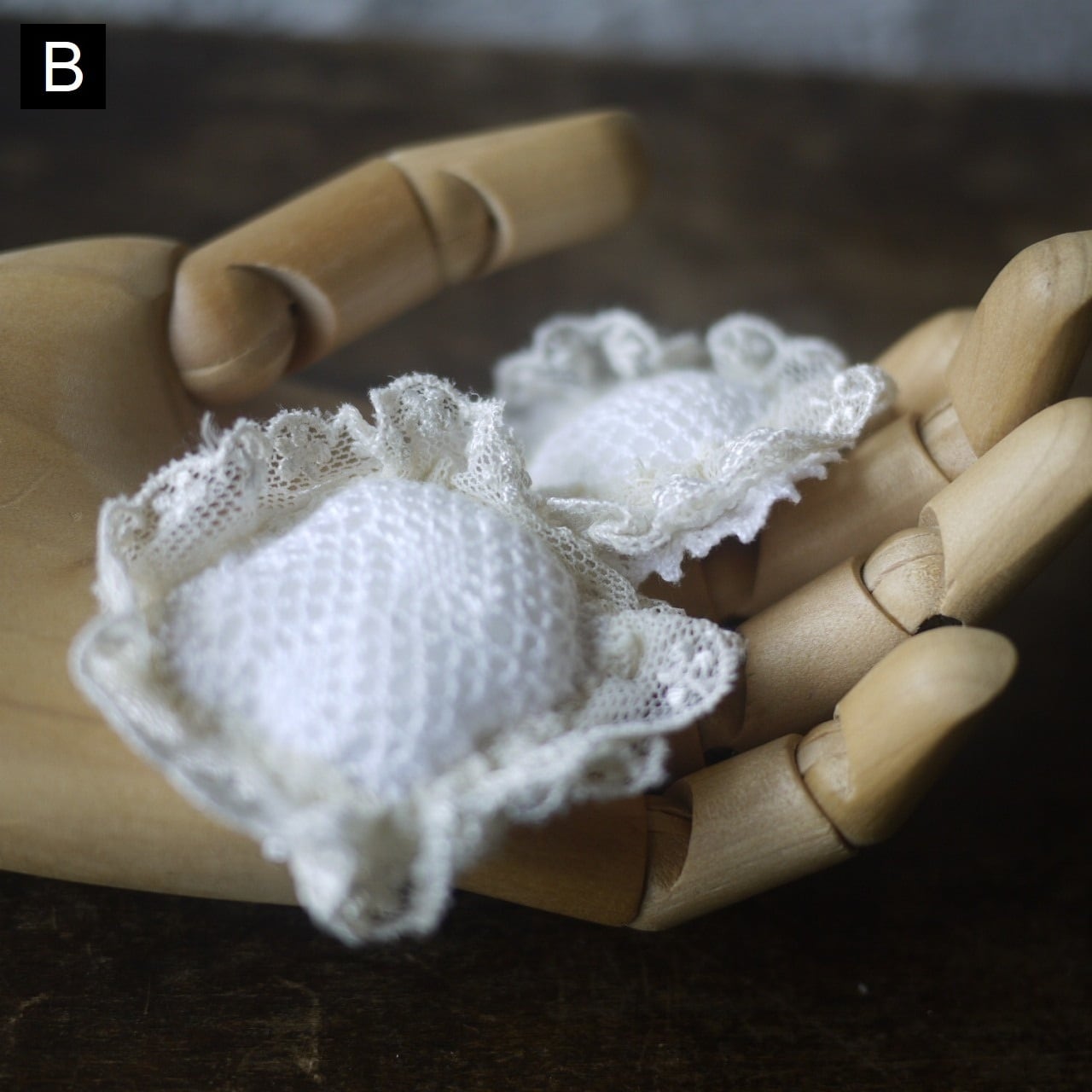 いずれもハンドメイドのため、形状、柄の出具合、フリルなどが