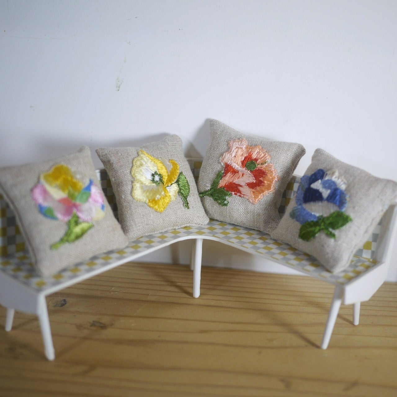 ミニチュアクッション6cm ドールハウス 刺繍モチーフ