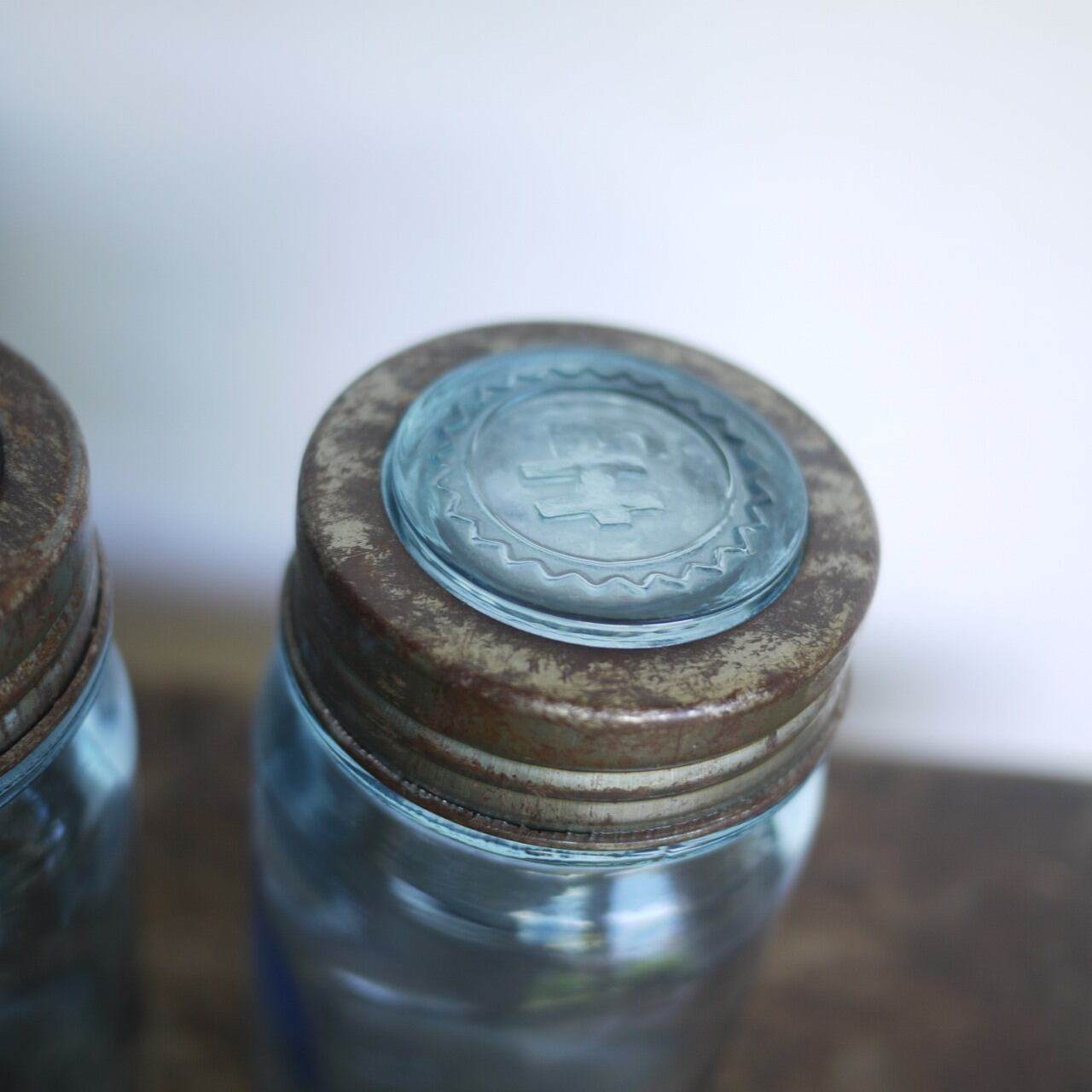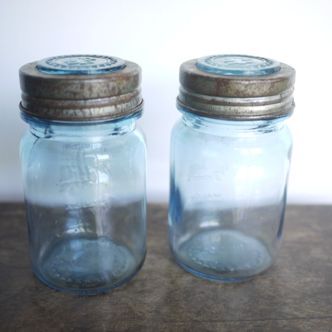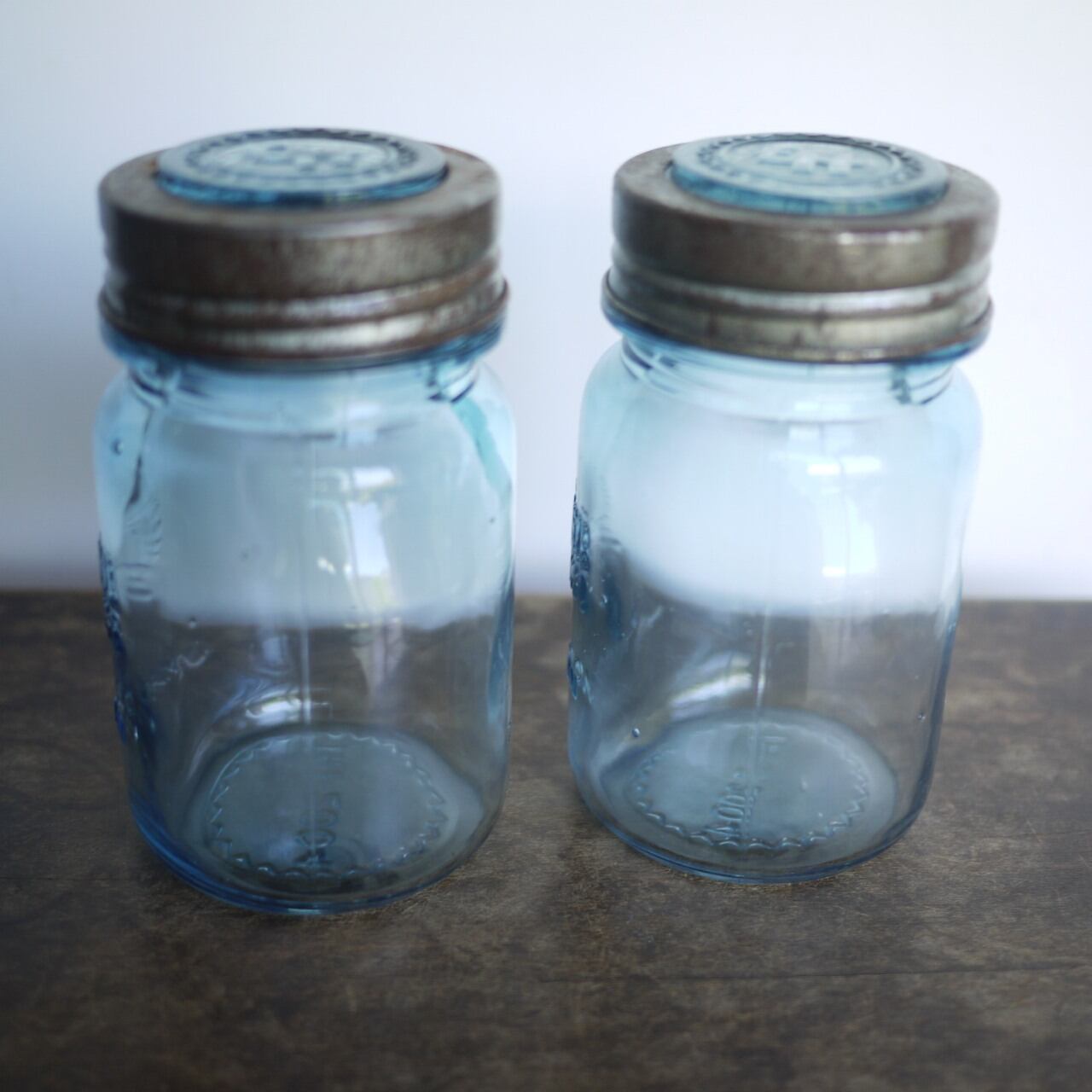 THTメイソンジャー2個 ガラス保存容器 ダブルキャップ アメリカ