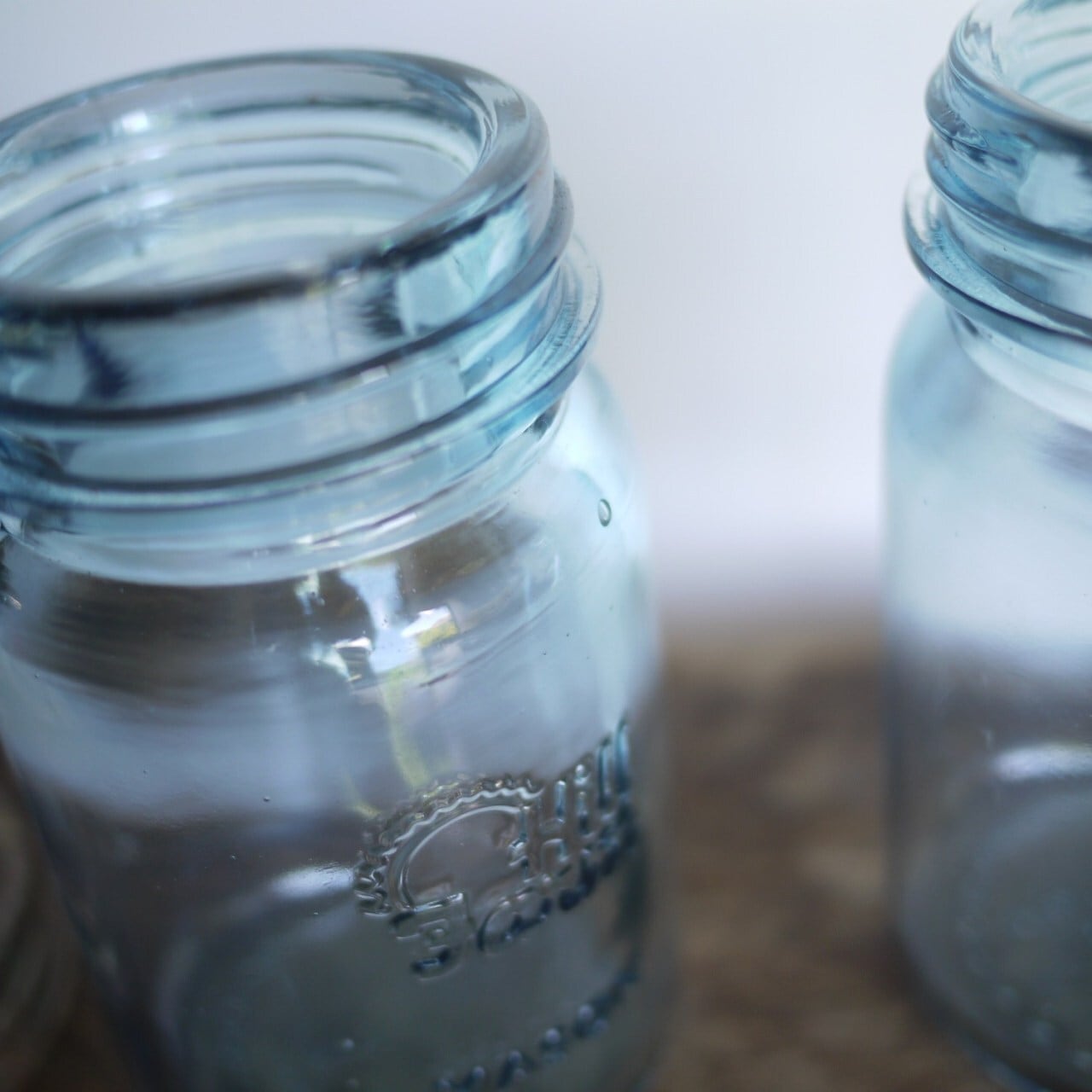 主に食品を保存するのに用いられたガラス製の広口瓶。
