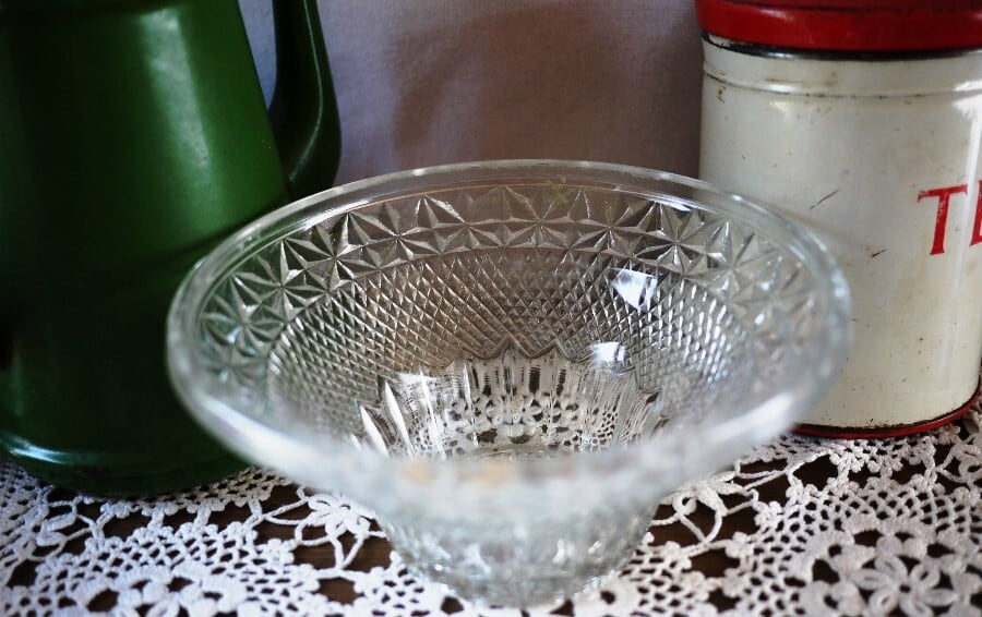 古いプレスガラスのボウル。