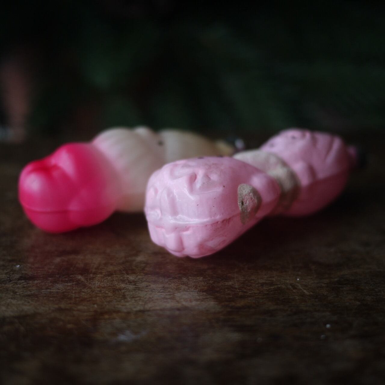 淡いマットな色が塗られレトロなセルロイド人形のようです。