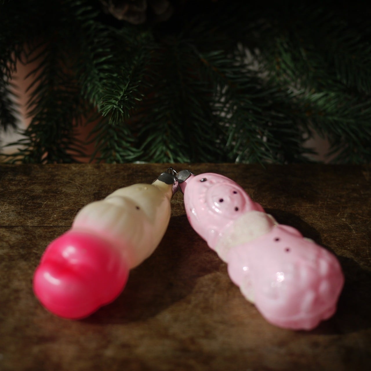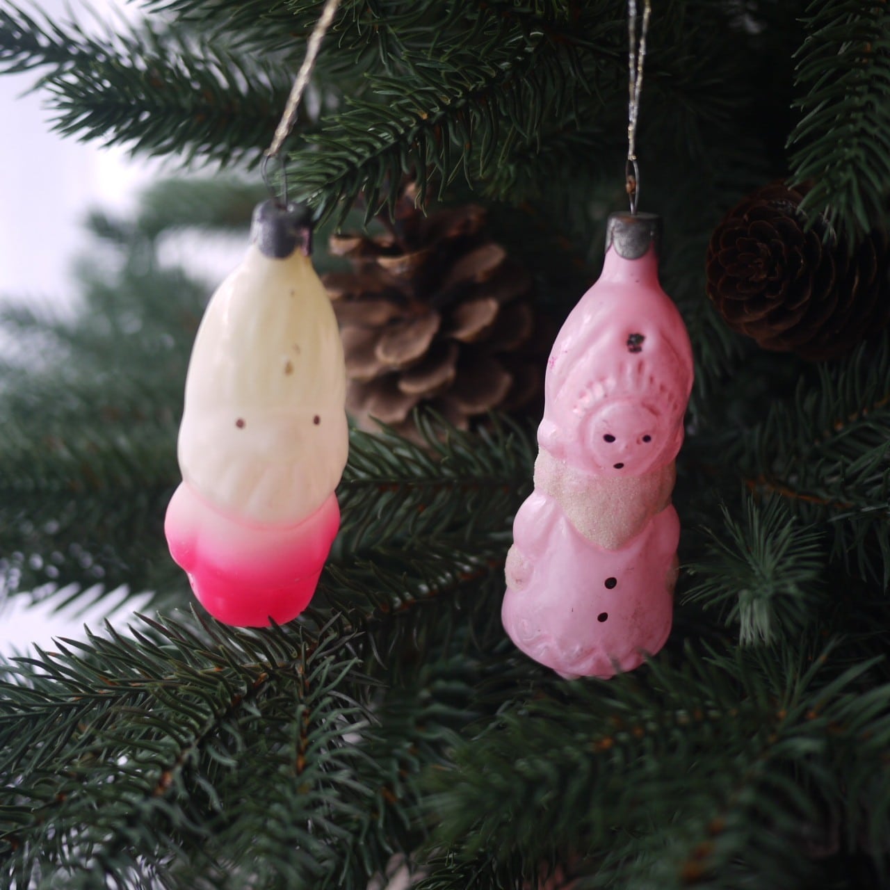 ガラスオーナメント2P 雪娘スネグーラチカ 妖精ノーム ソ連USSR