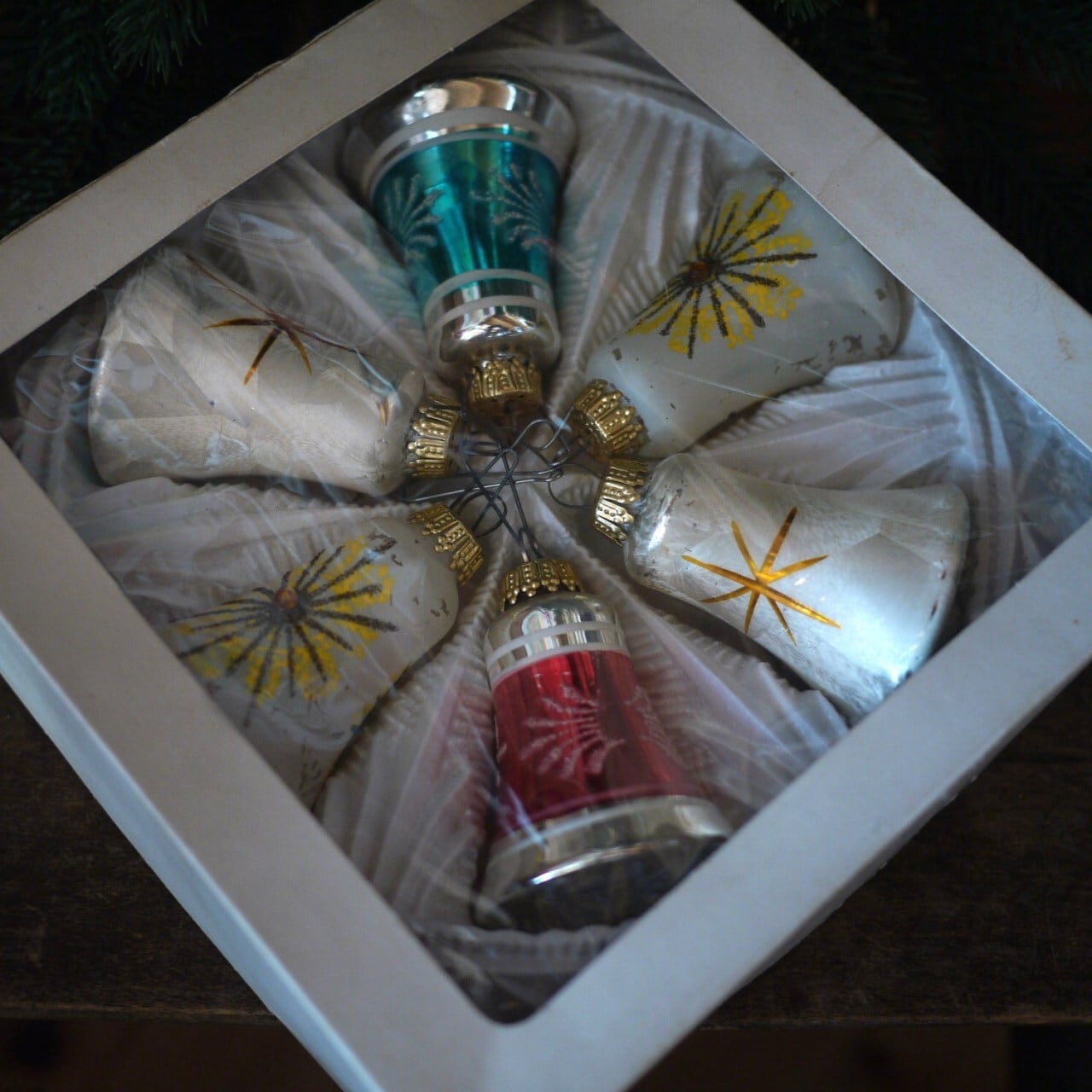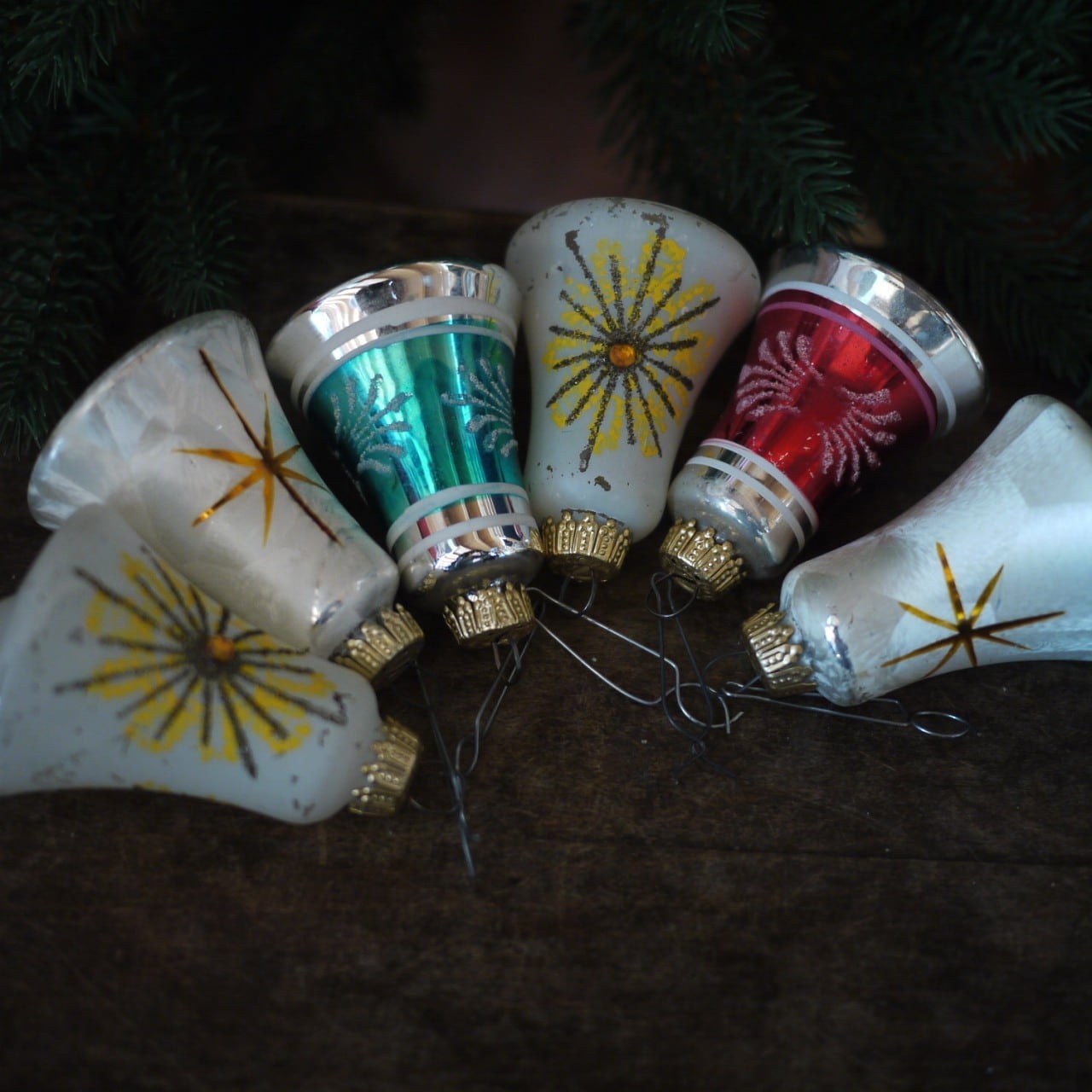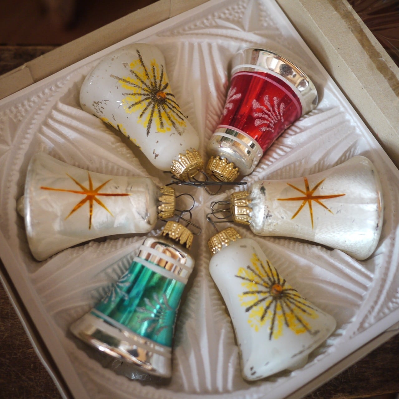 クリスマスベル6個 ガラスオーナメント スターバースト 西ドイツ