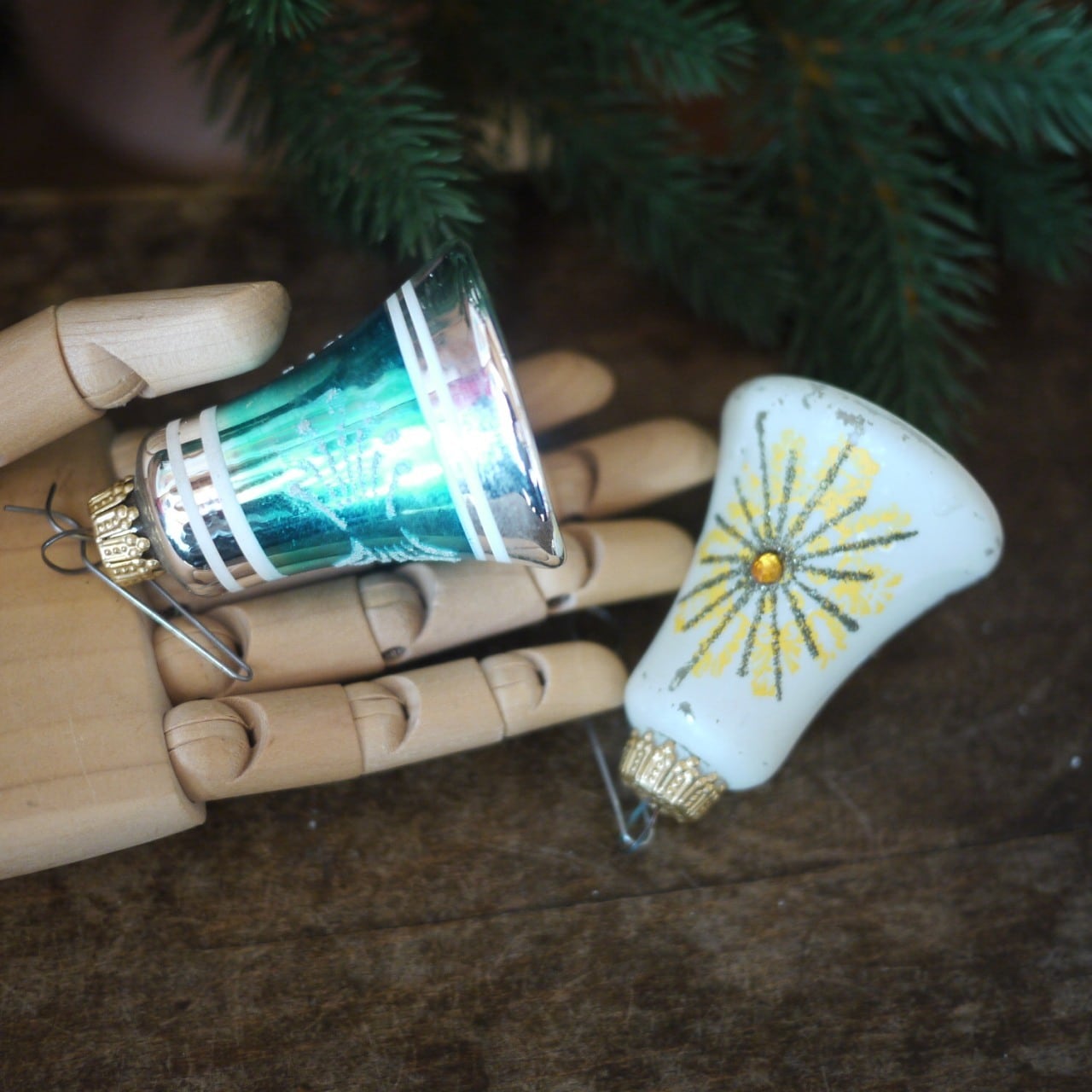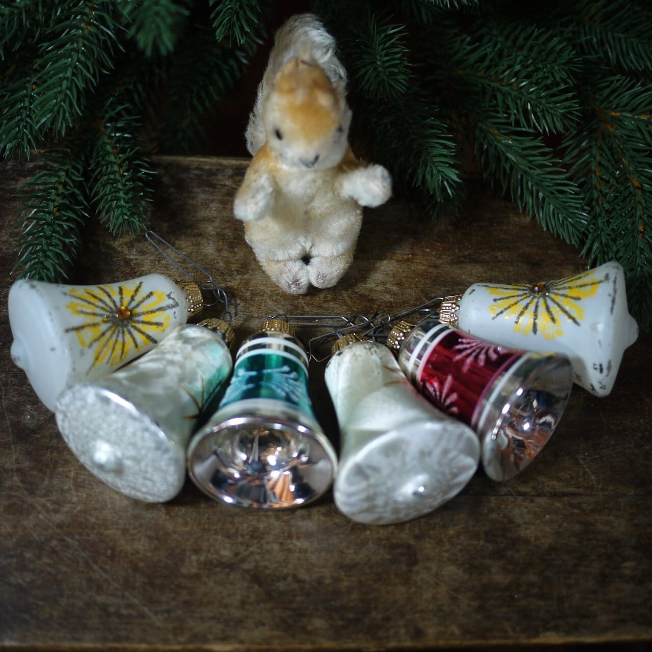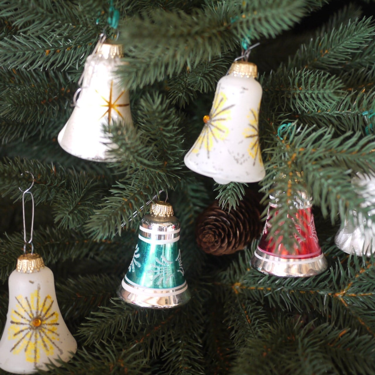 クリスマスベル6個 ガラスオーナメント スターバースト 西ドイツ