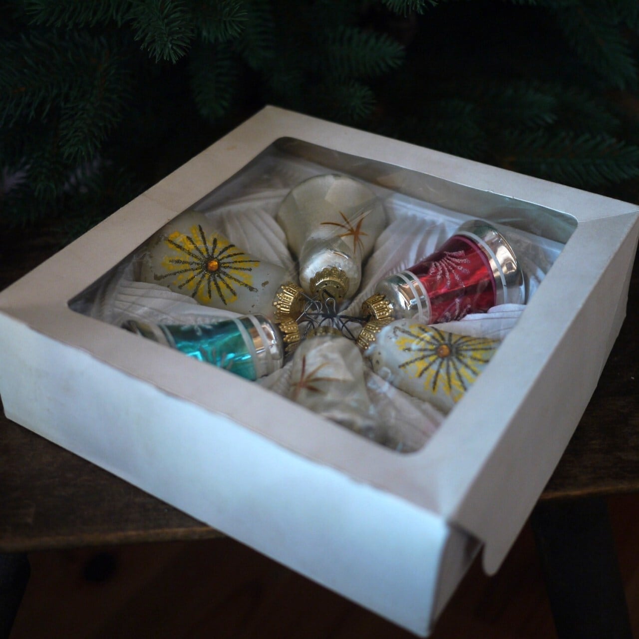 [クリスマスベル6個 ガラスオーナメント スターバースト 西ドイツ]
