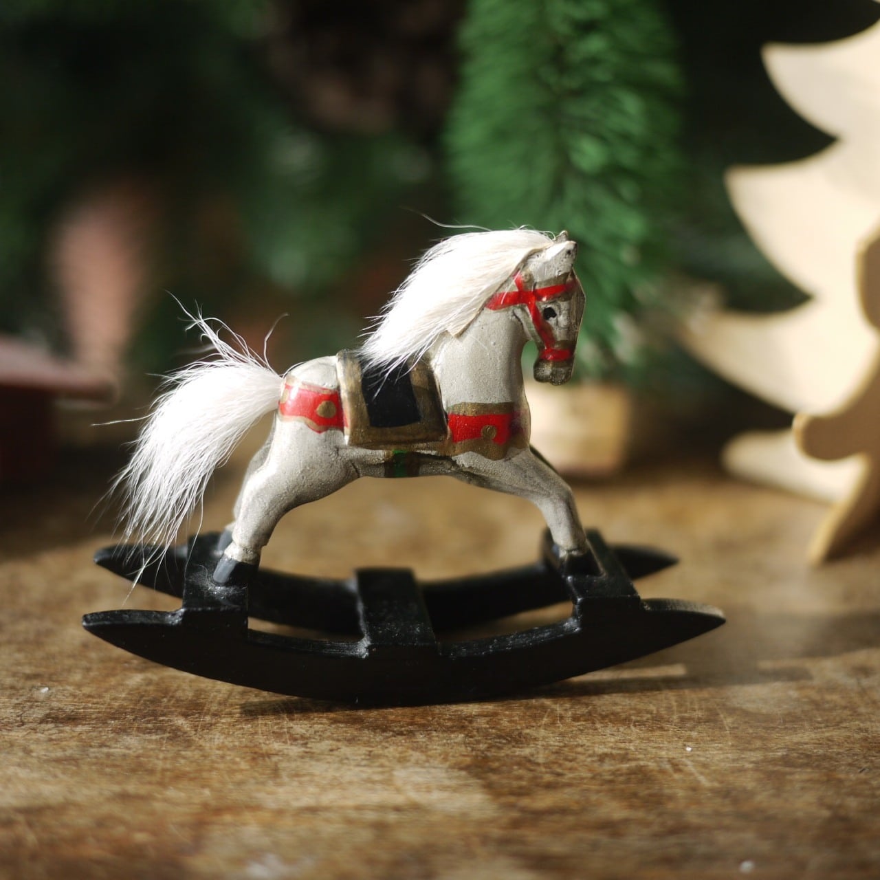 クリスマス飾り、とても小さな白い「ロッキングホース」