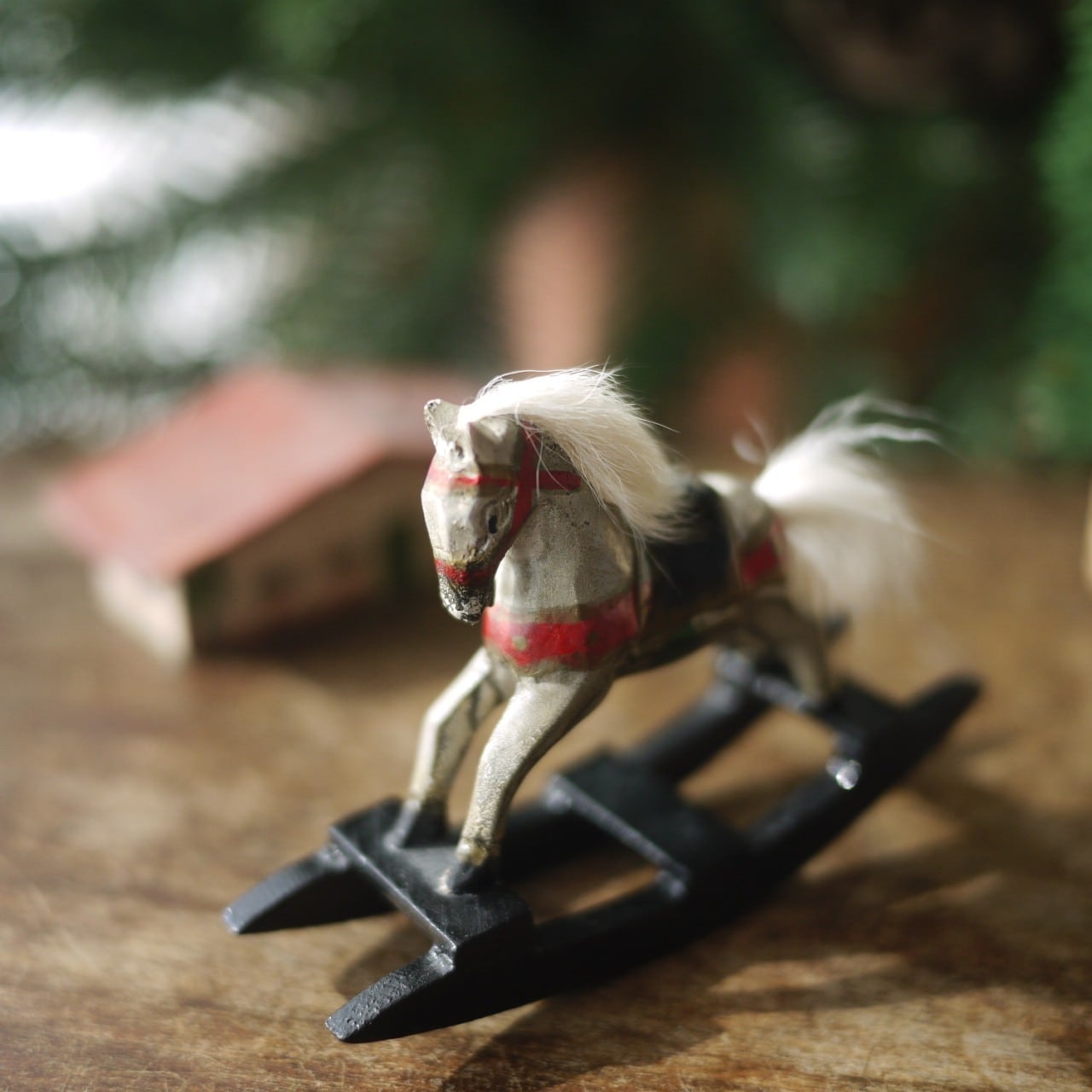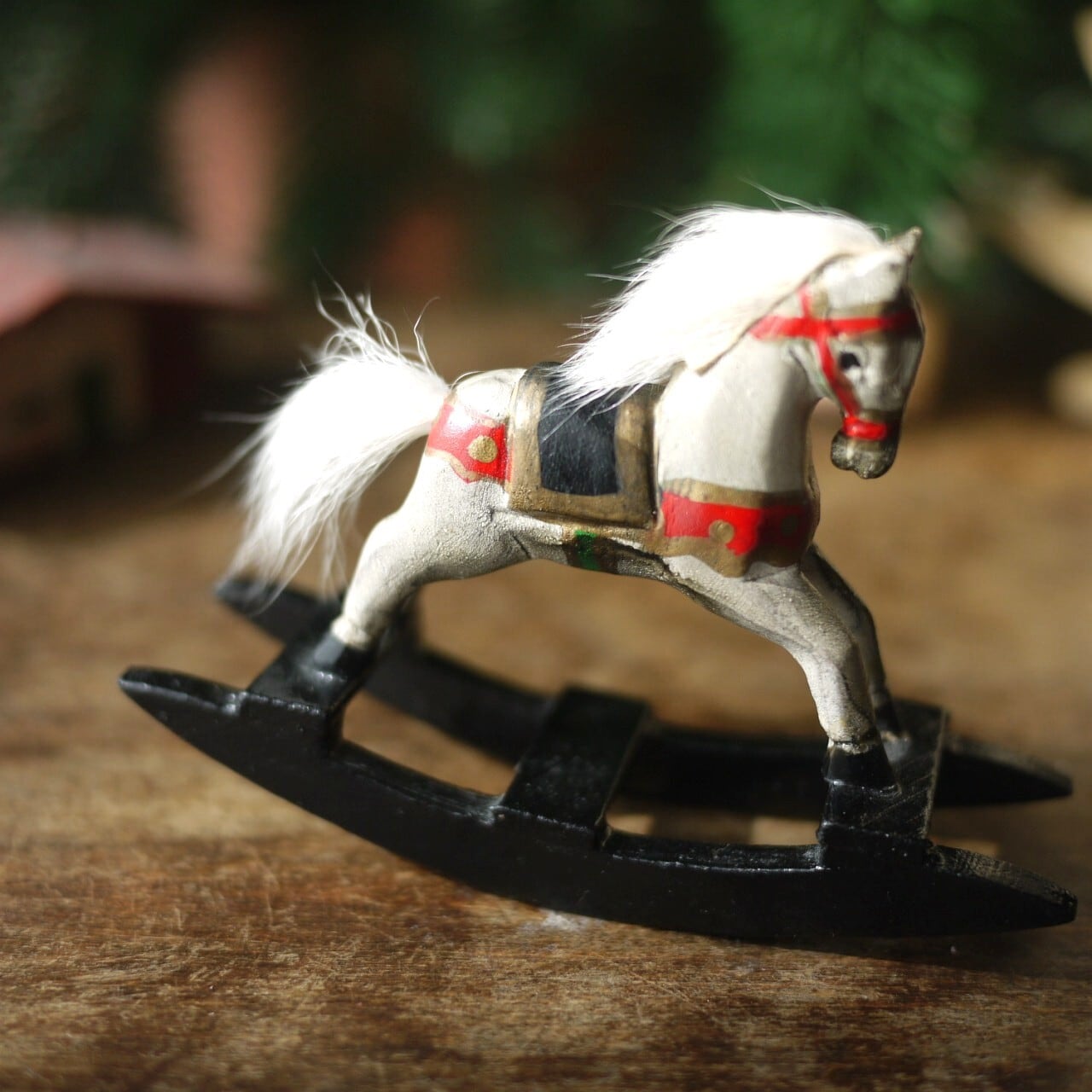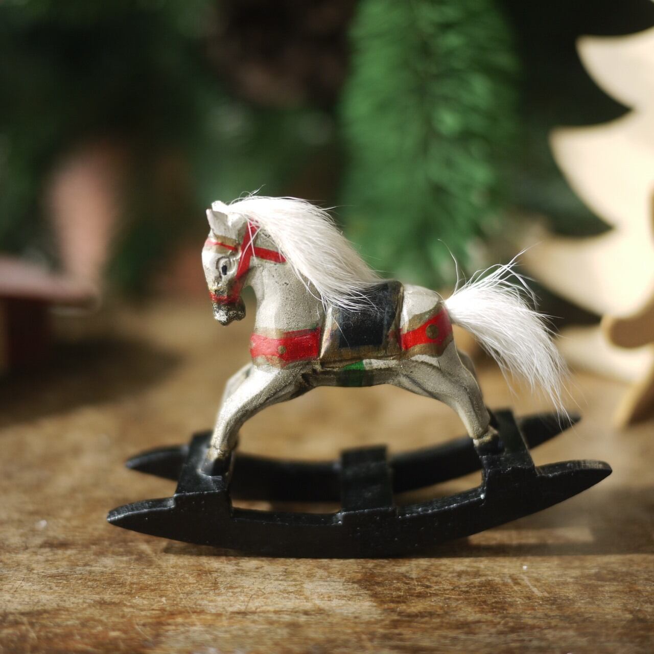 小さな白馬オーナメント ハンギング木馬 ロッキングホース ドイツ