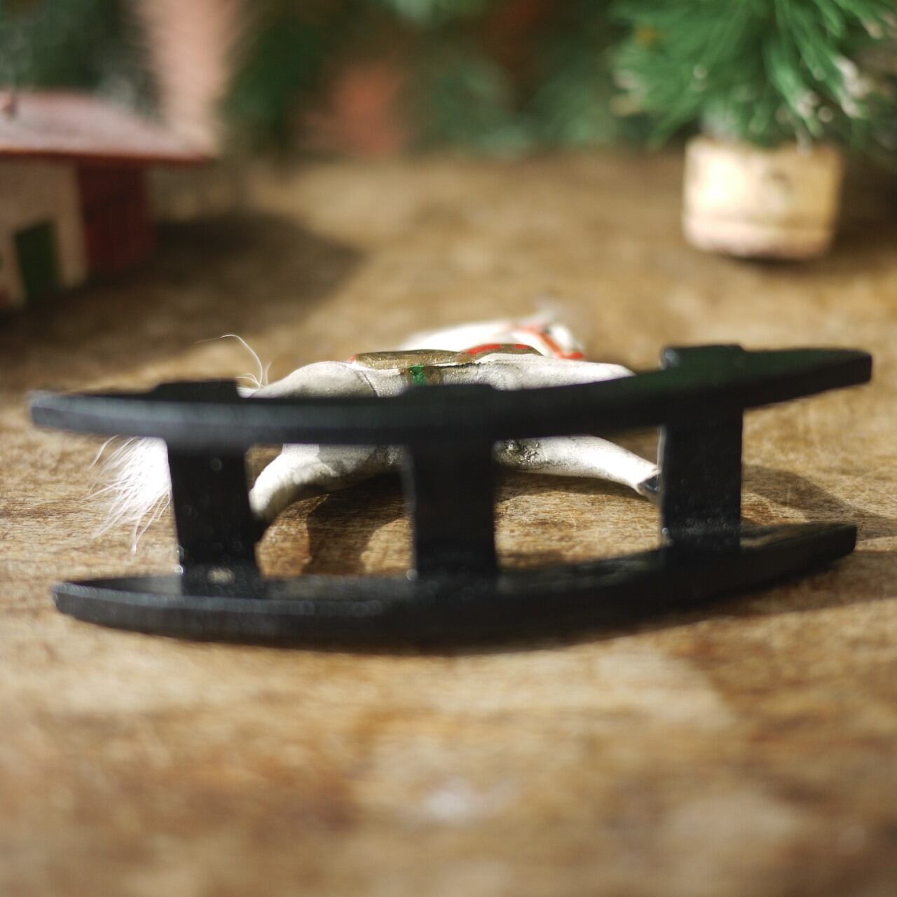 毛皮を使った小さな揺り木馬のオーナメントです。