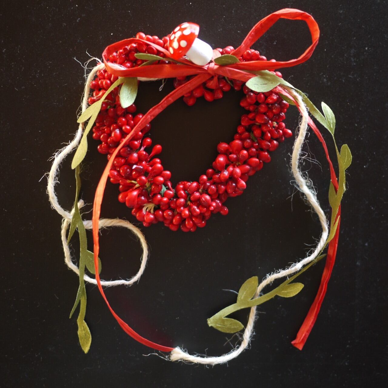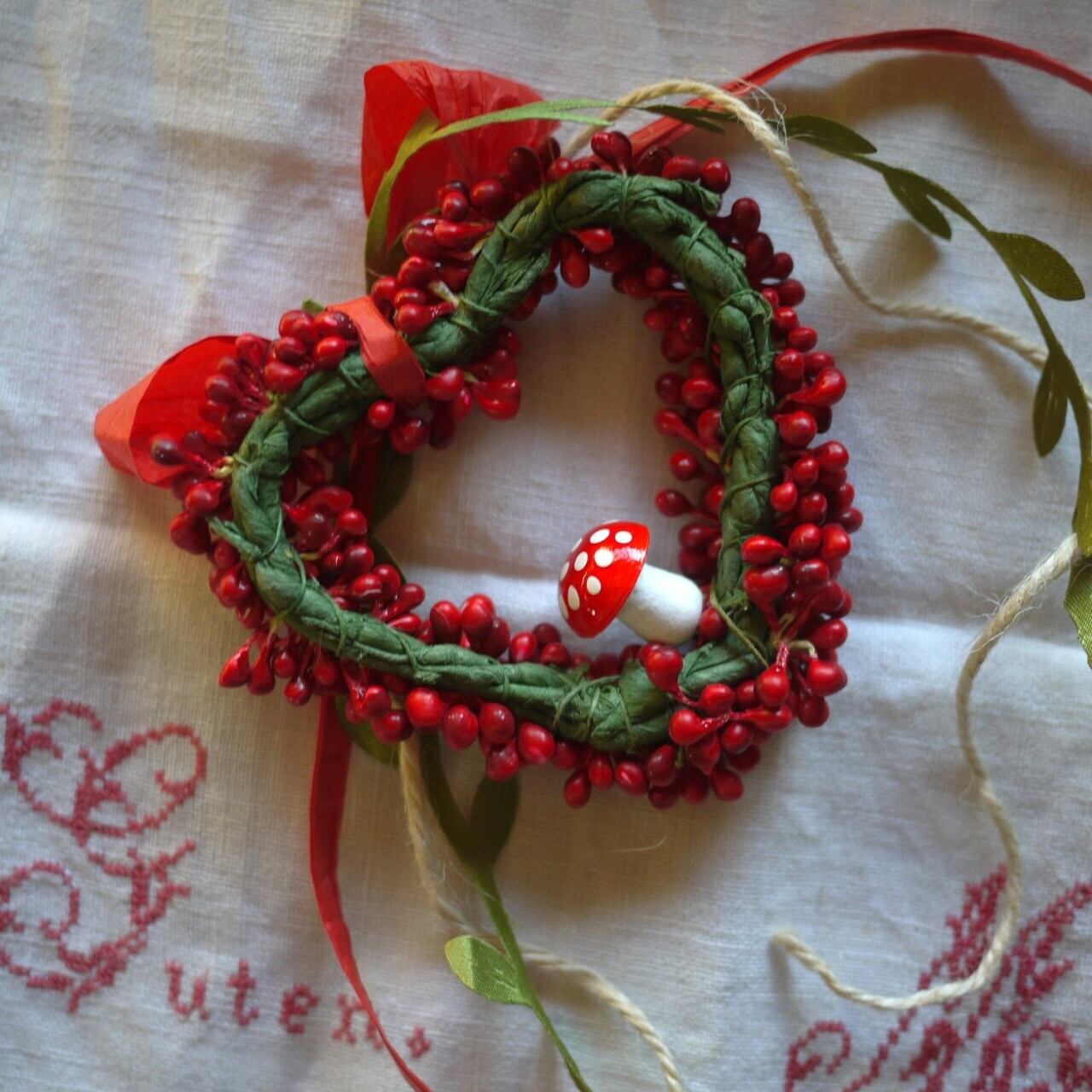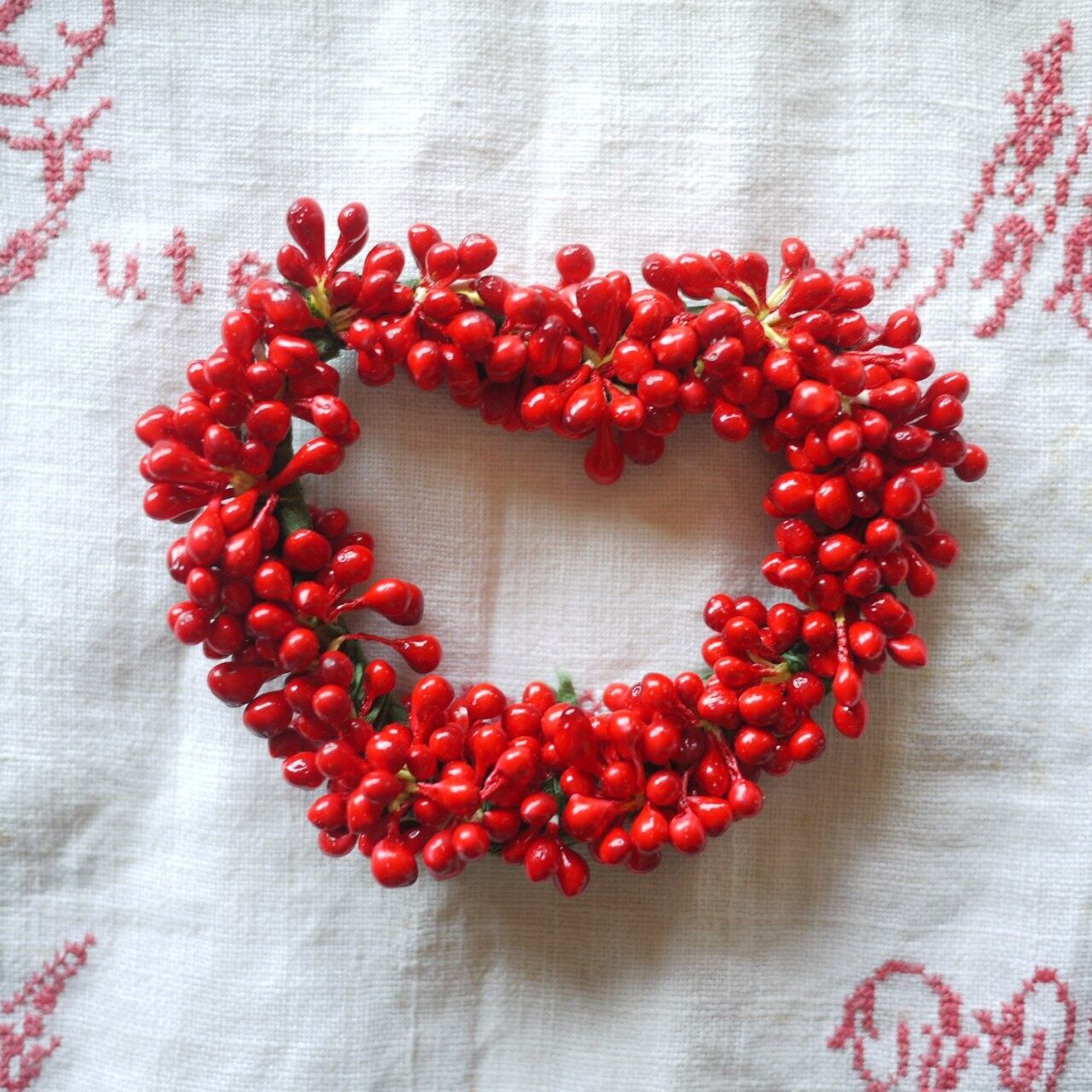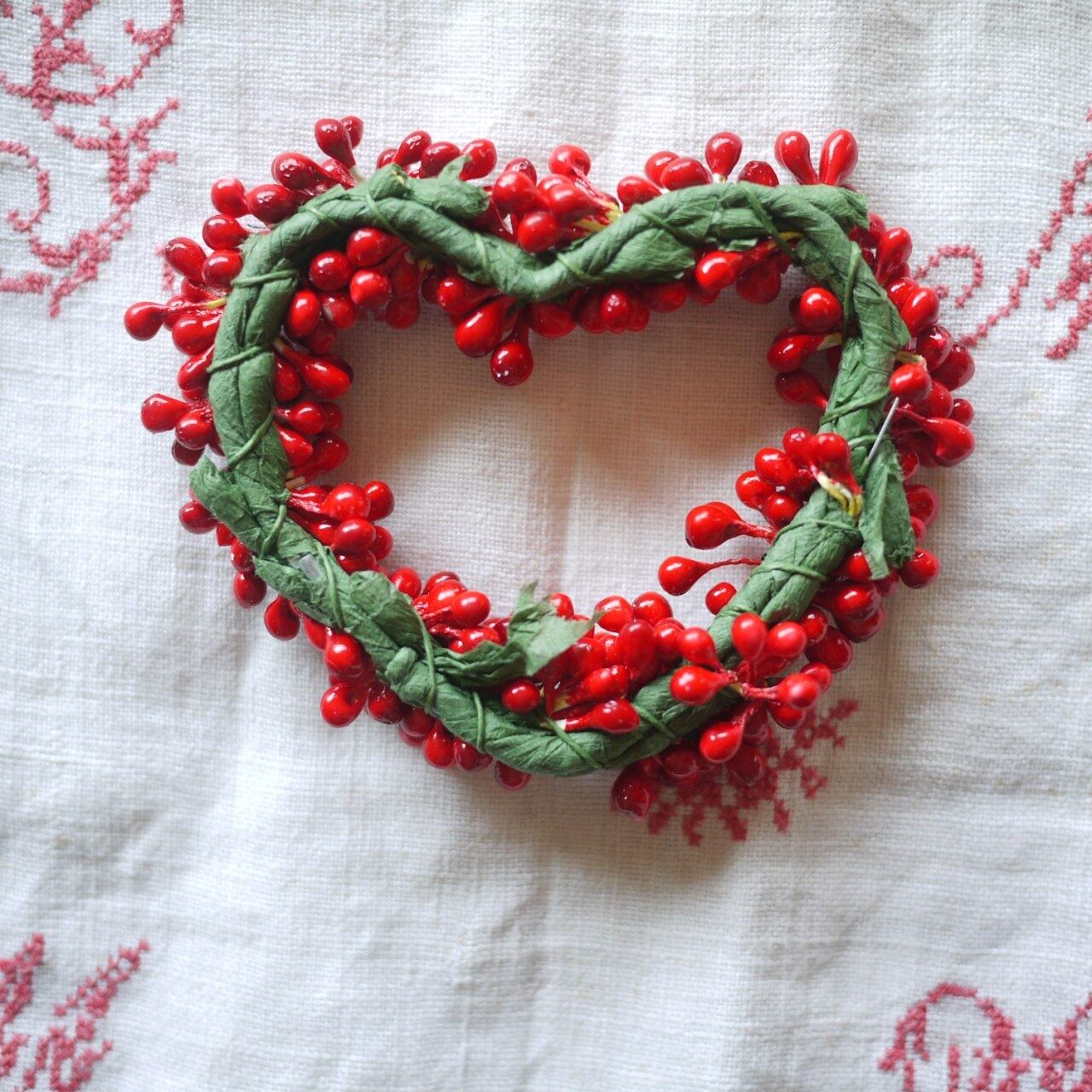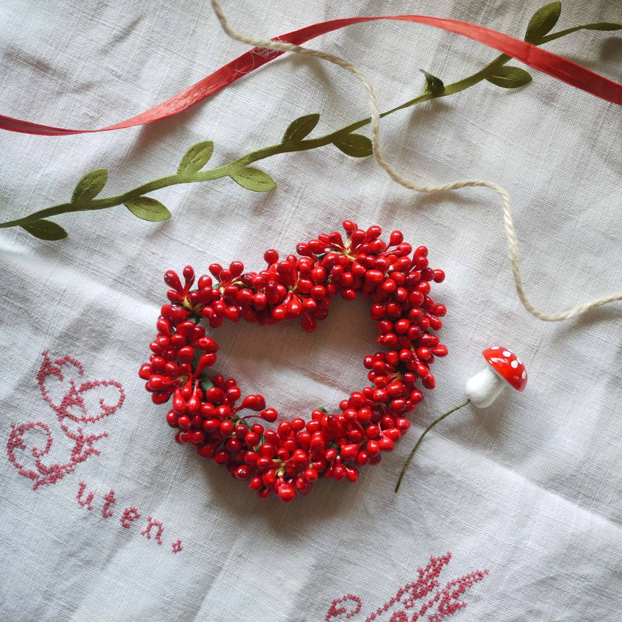 (ハート型クランツ) ハンドメイド、赤い実の一部剥がれ、傷があります。
