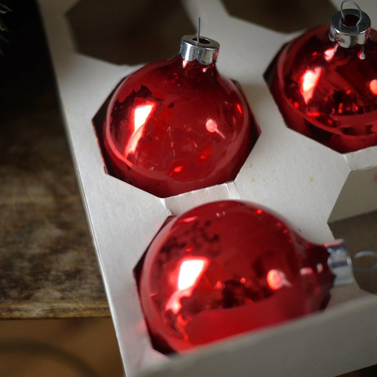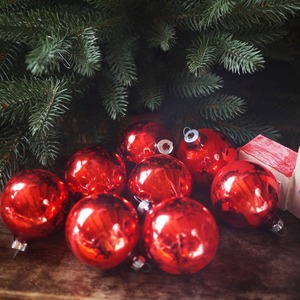 pyramid 赤色ガラス飾り玉8個 マーキュリーガラス アメリカ