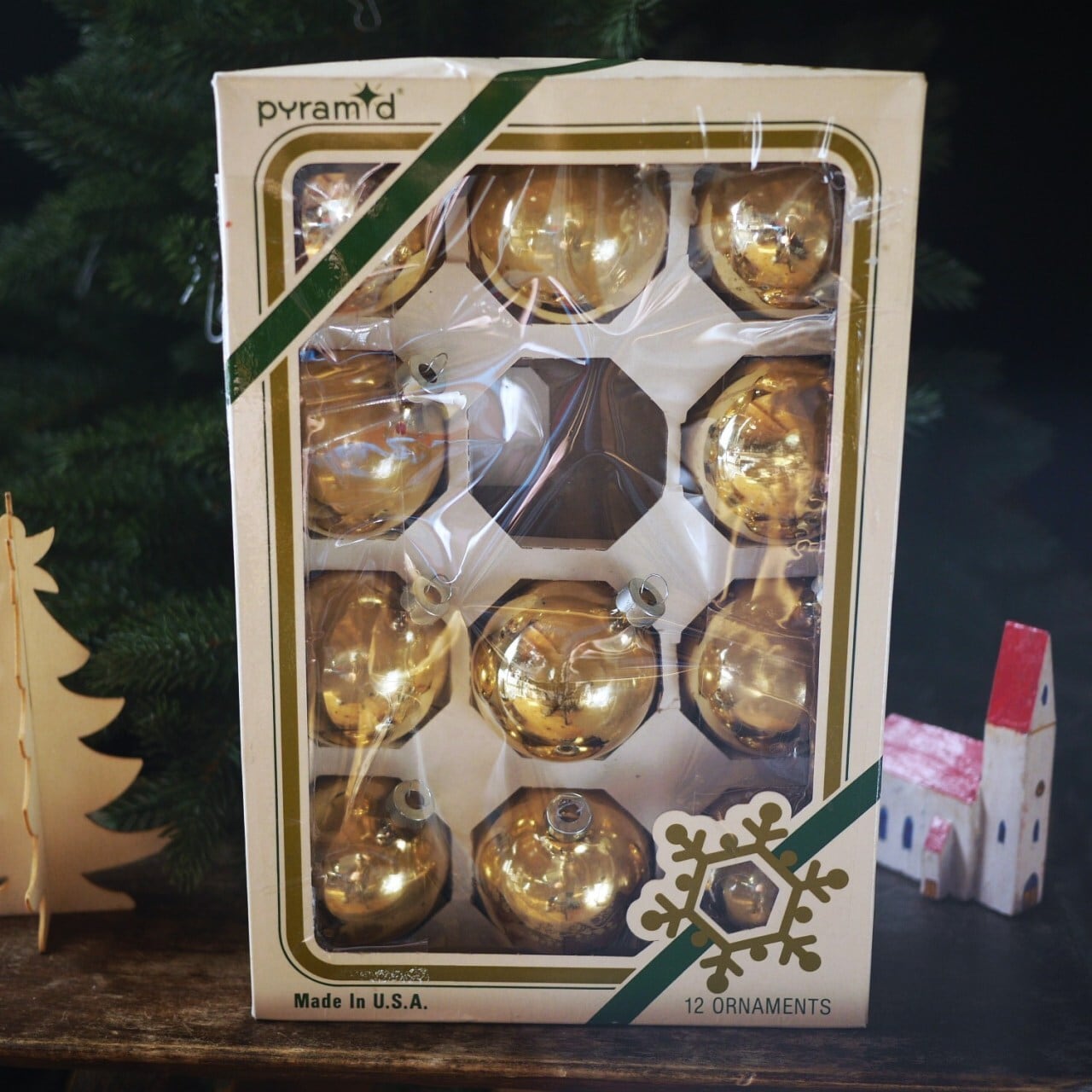 [pyramid 金色ガラス飾り玉11個 マーキュリーガラス アメリカ]
