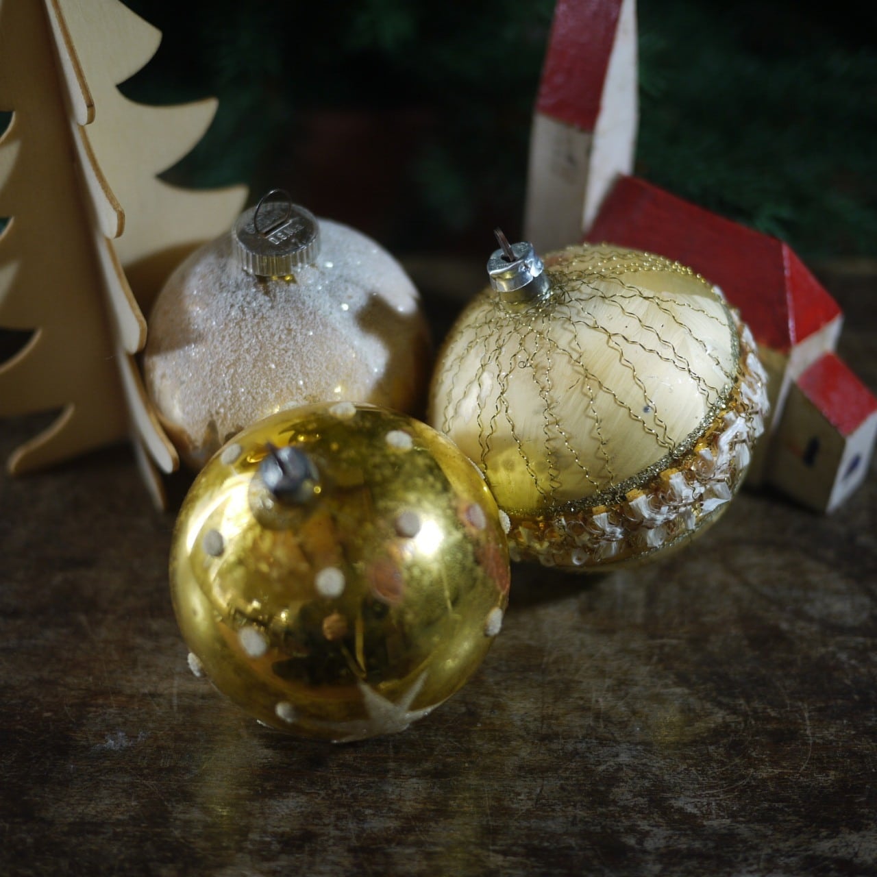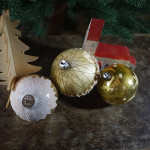 [金色ガラスオーナメント6個 WEST-GERMANY]