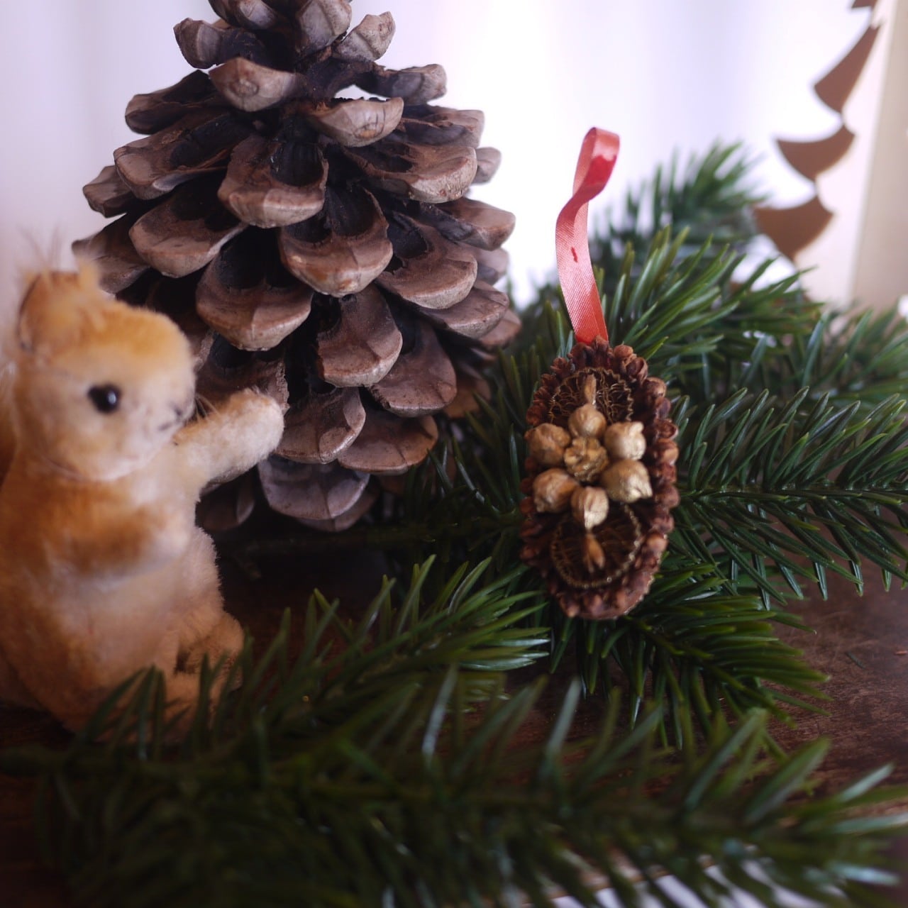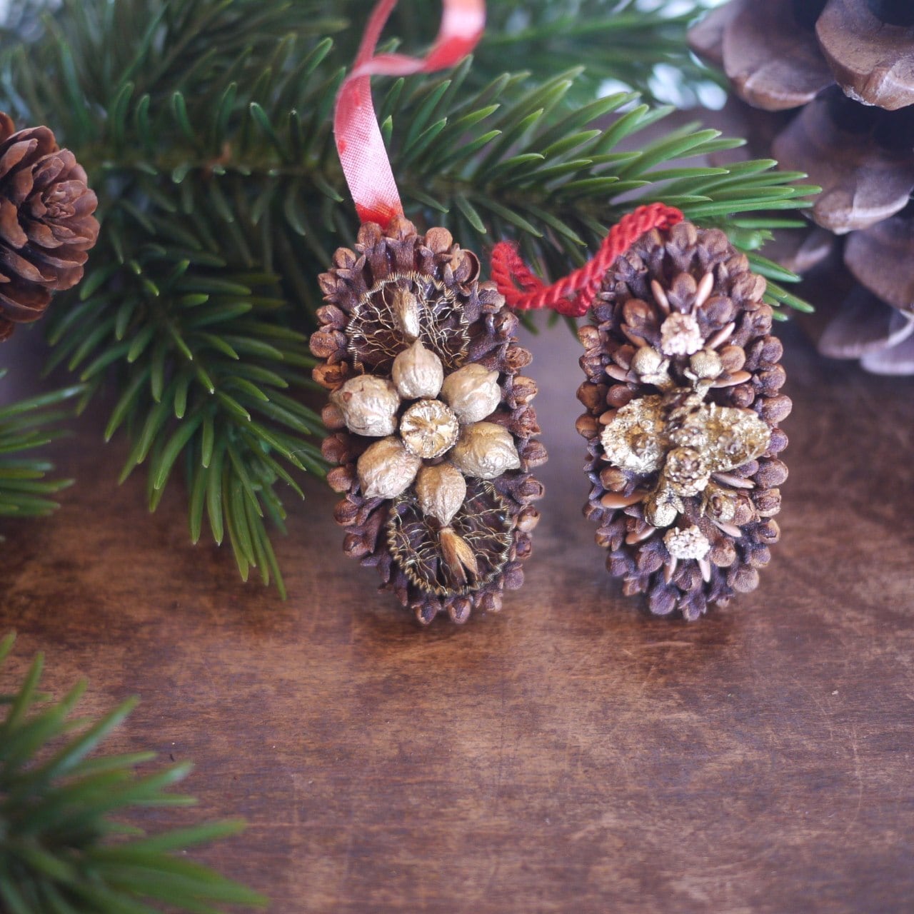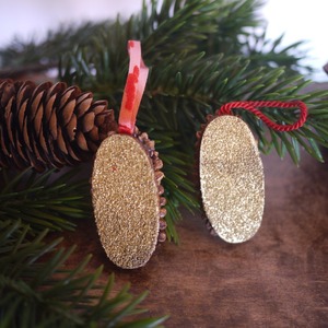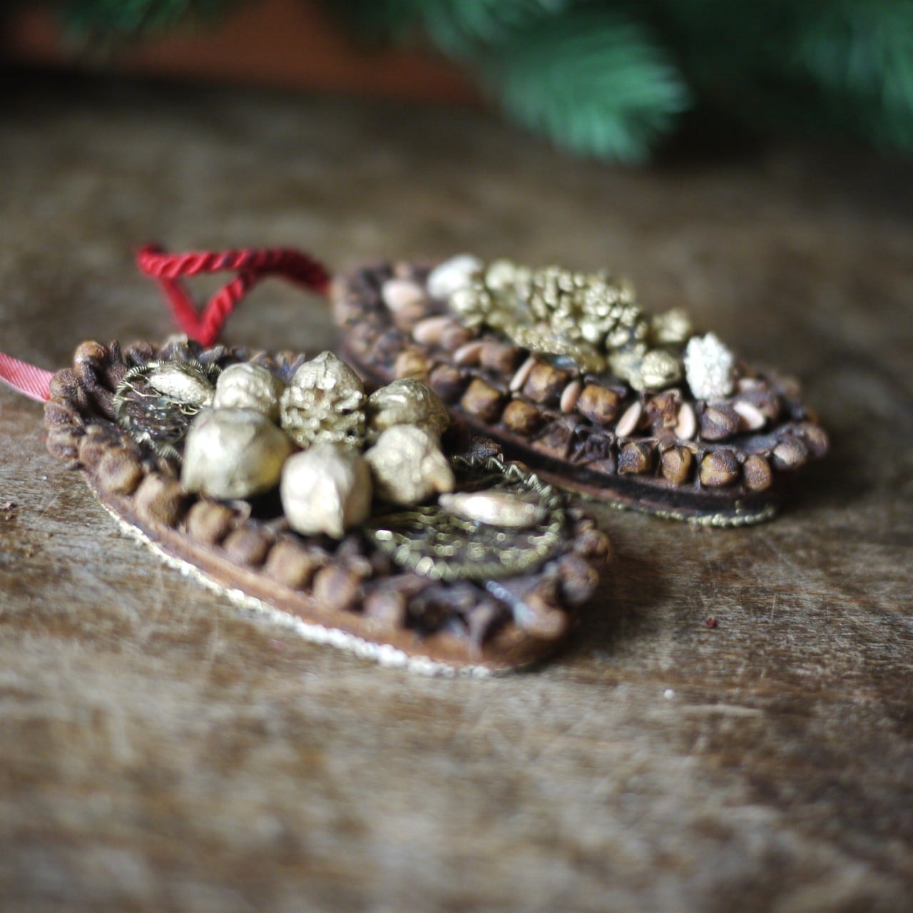 乾燥させた天然の素材を張り付けたオーナメント2P。