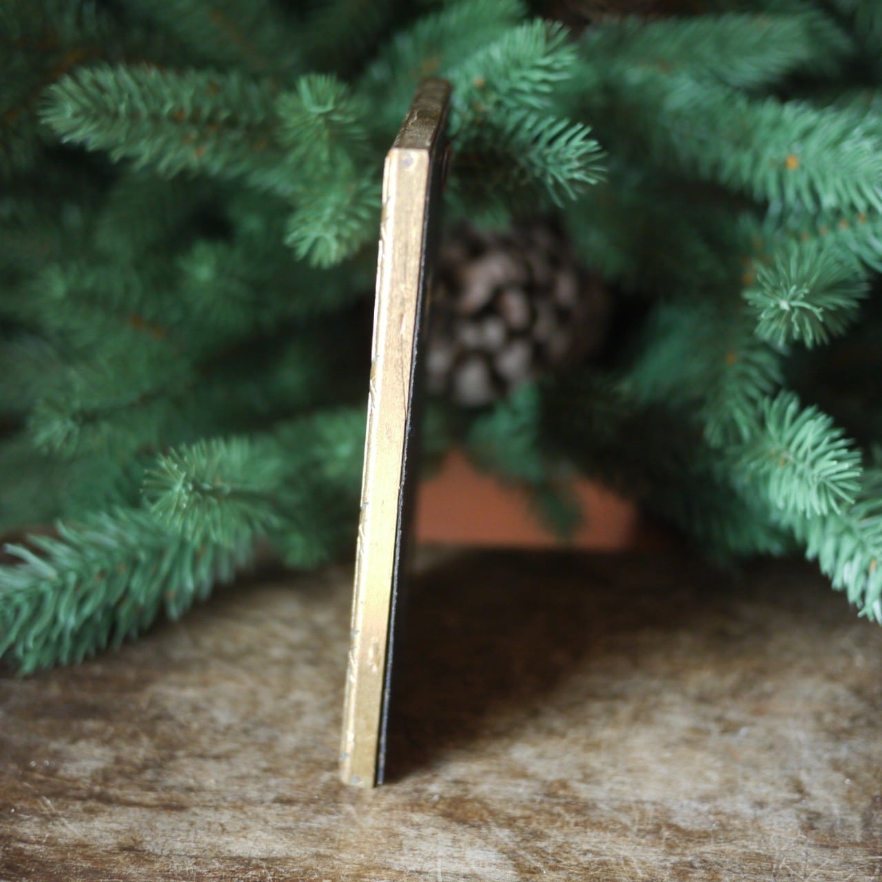 金色の金属でカバーされたフレームにガラスの入った額絵です。