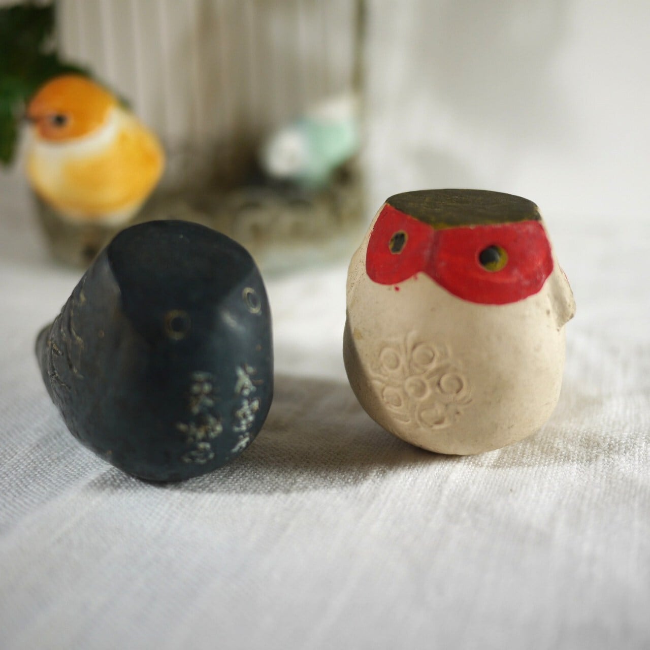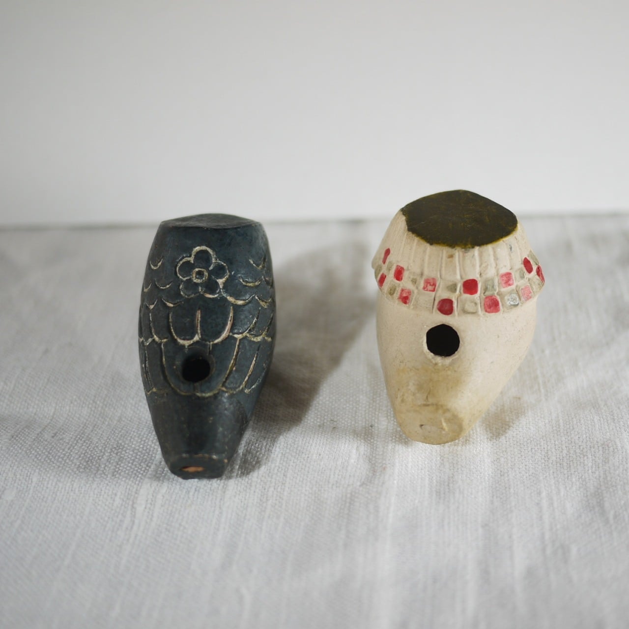 小鳥の土笛2個「あかうそ」「くろうそ」