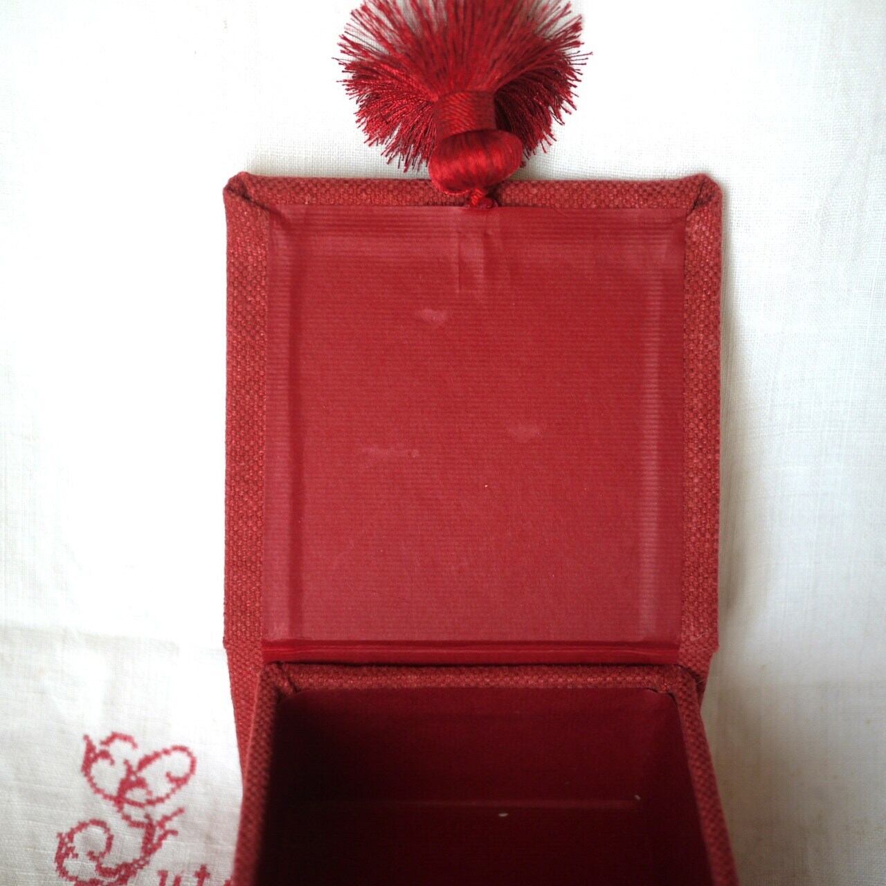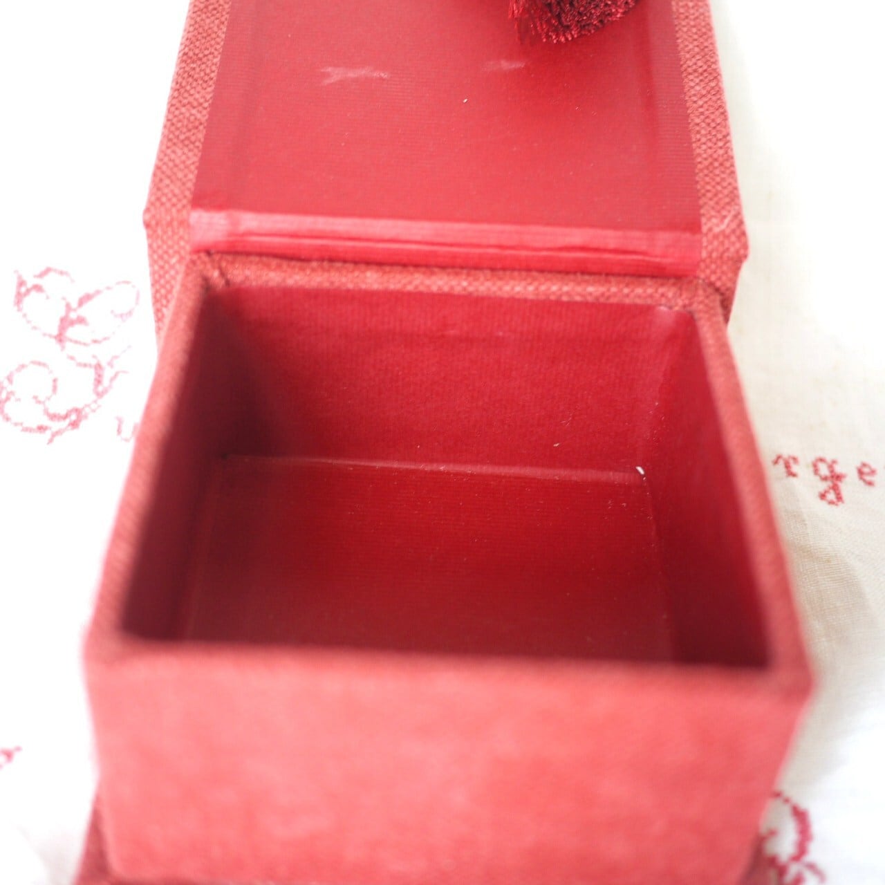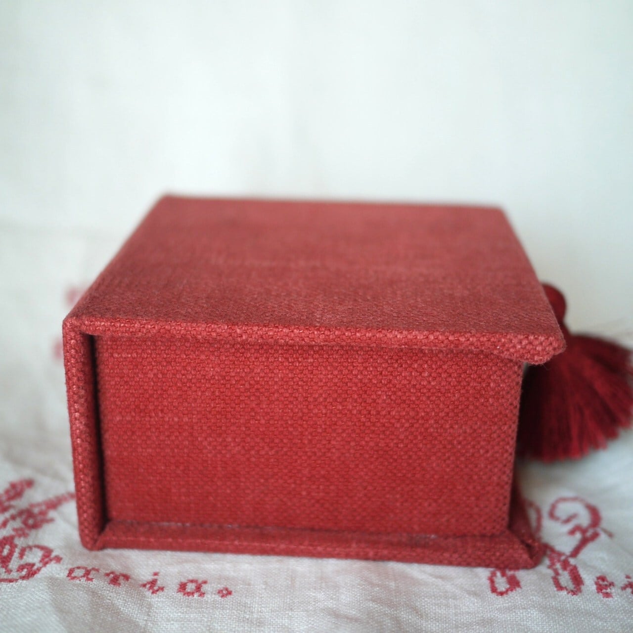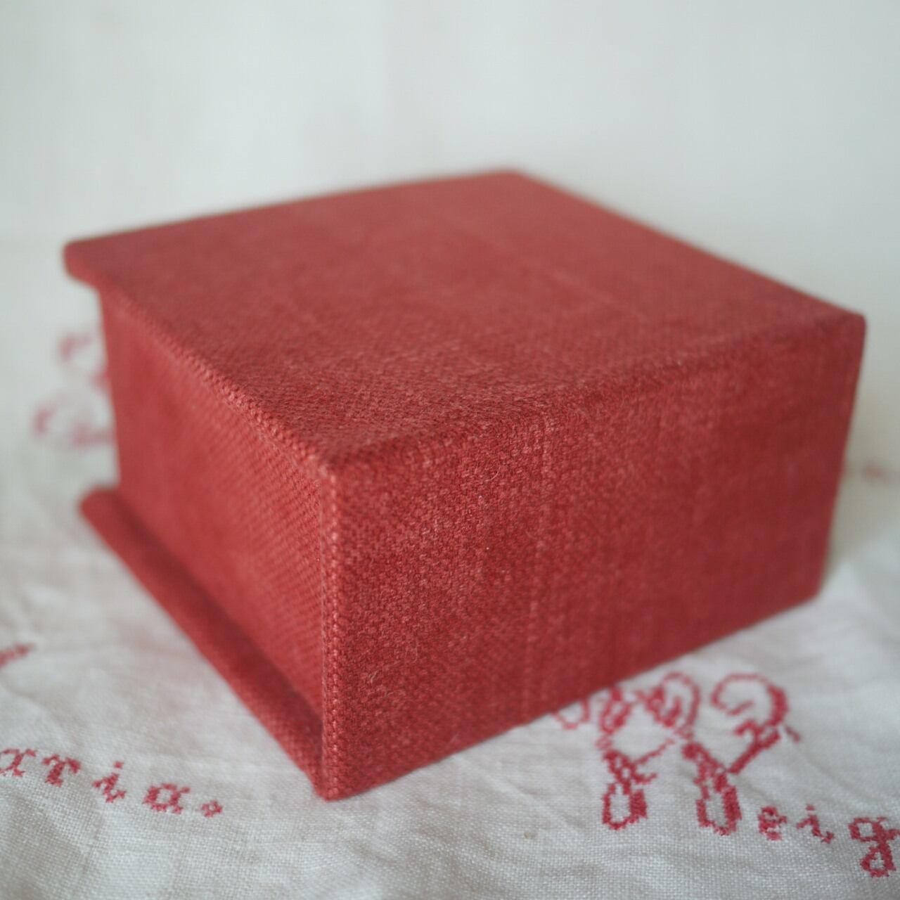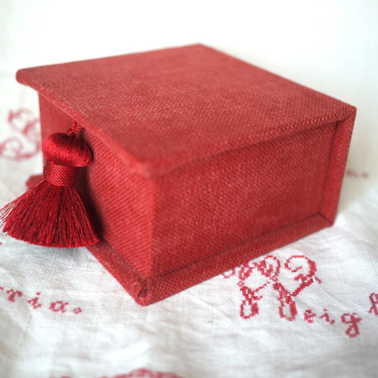 シックな赤のカルトナージュボックス。
