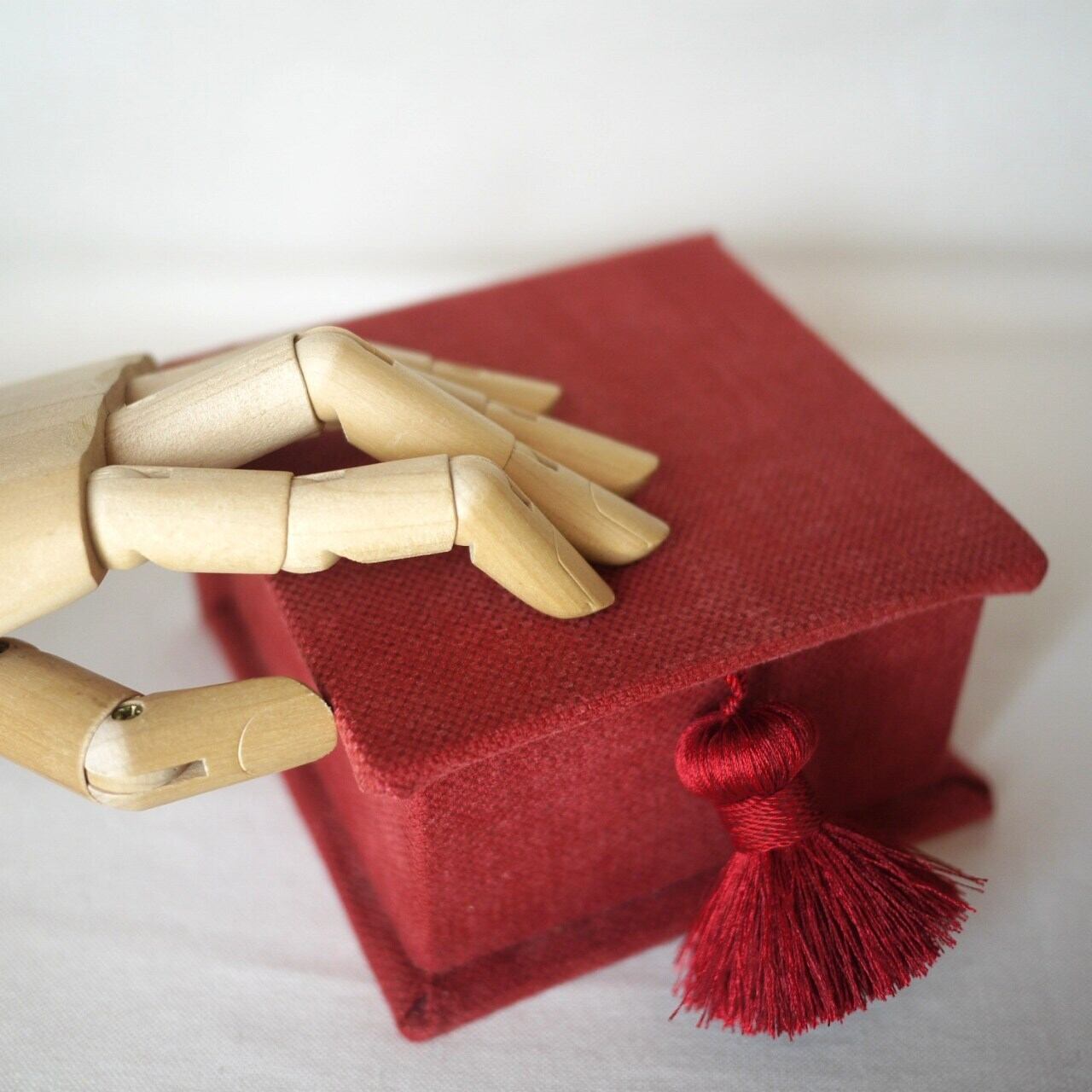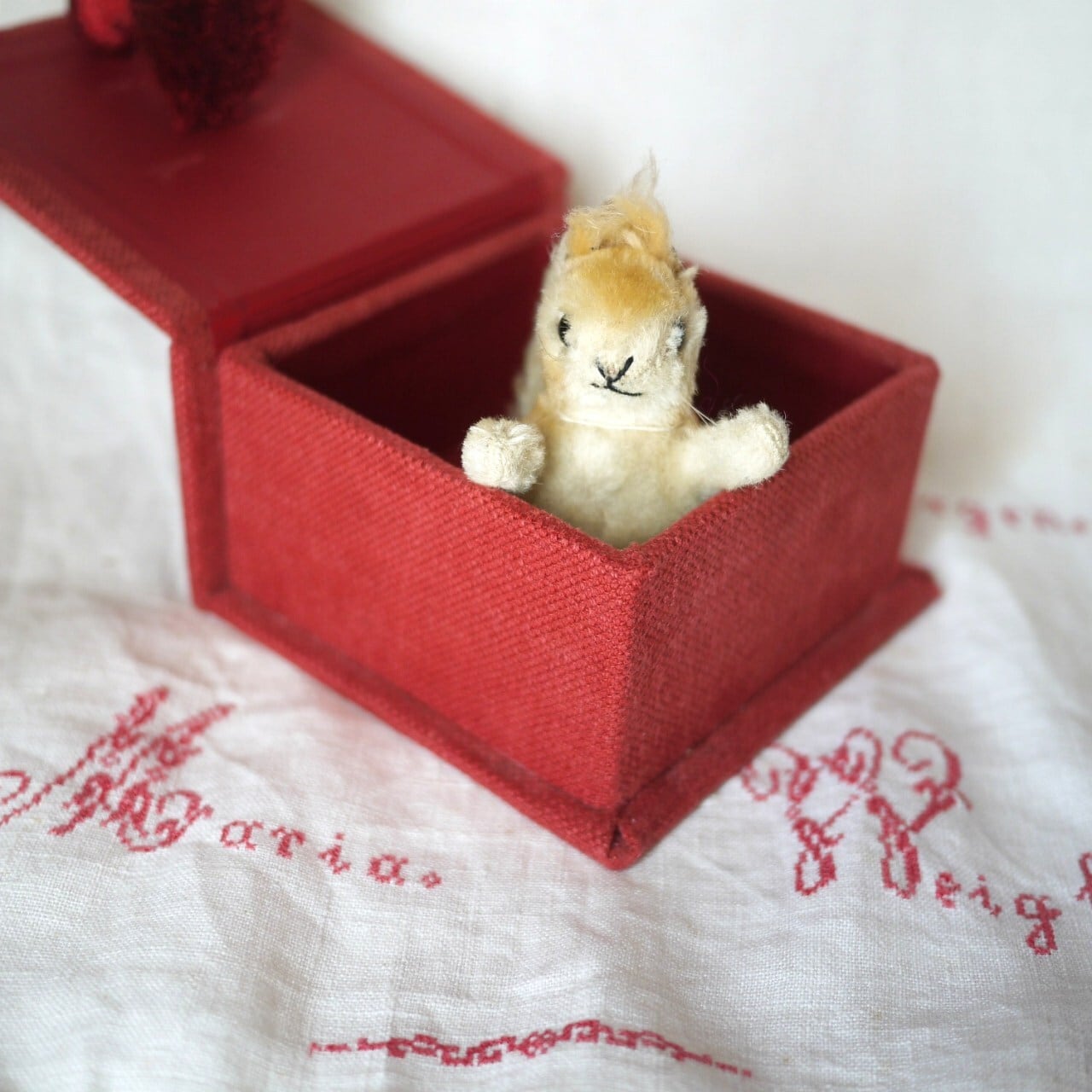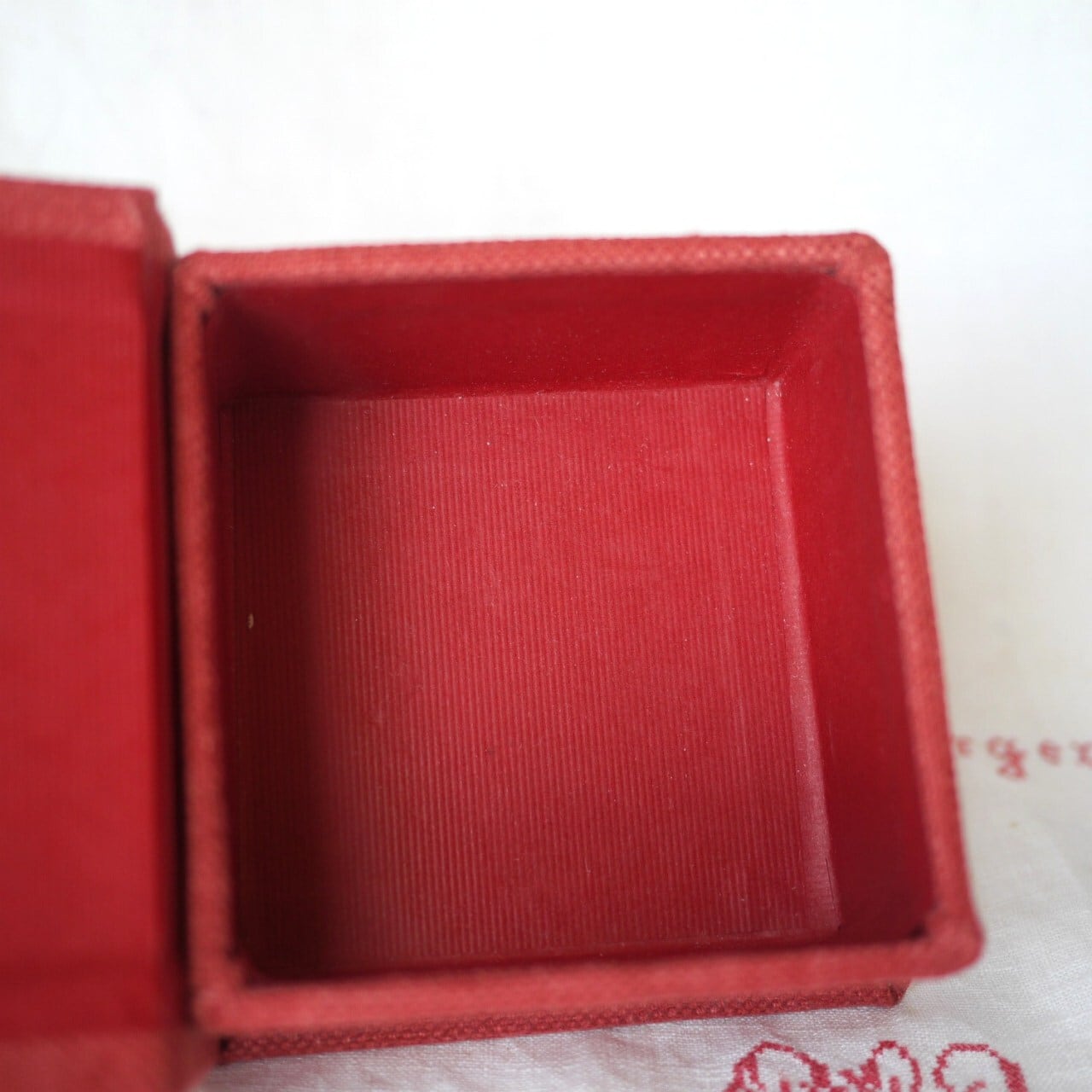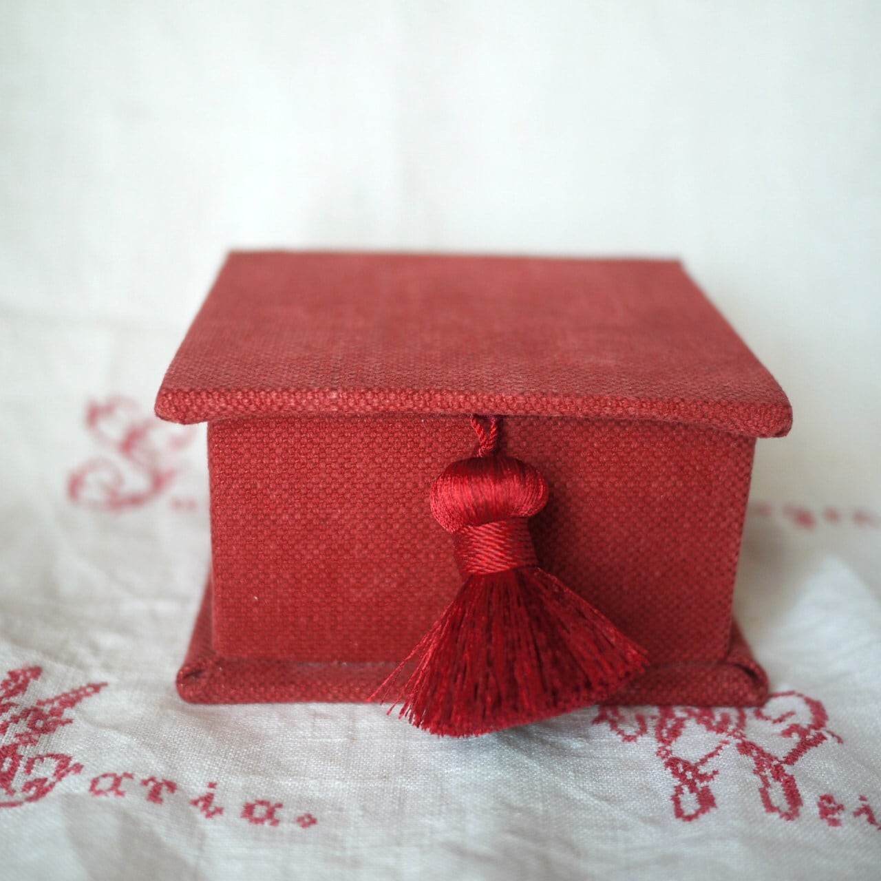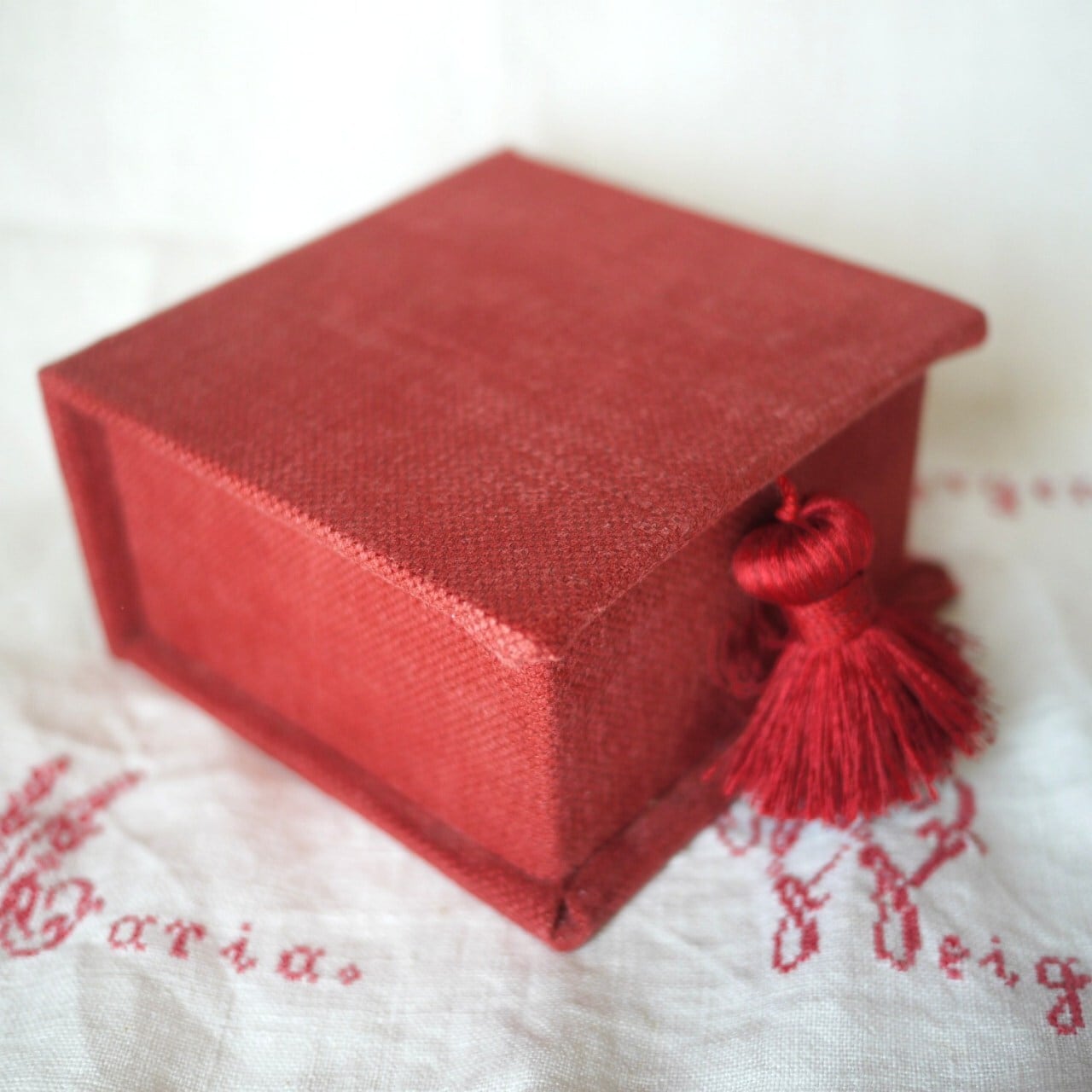 シックな赤のカルトナージュボックス。