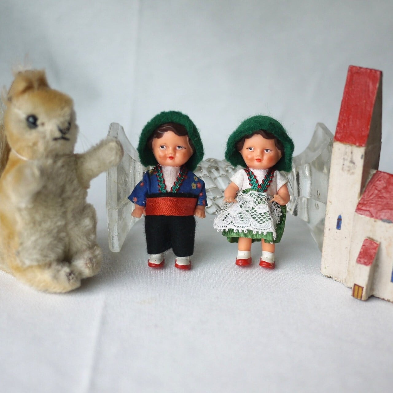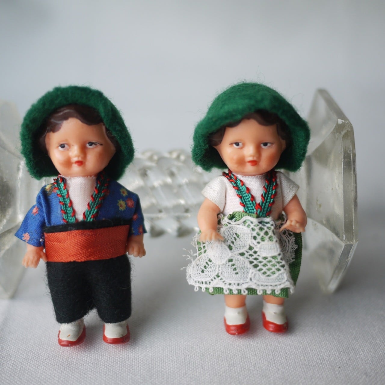 [民族衣装ペア ミニドール 緑の帽子 ドイツ]