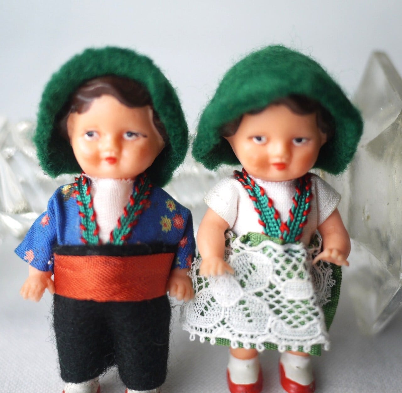 かわいい民族衣装のペアのお人形2人。
