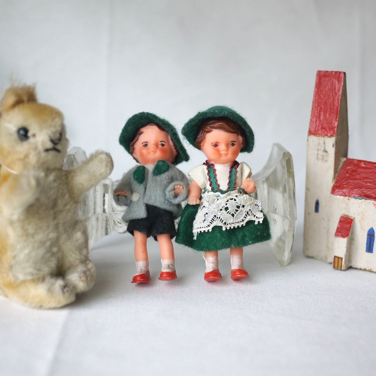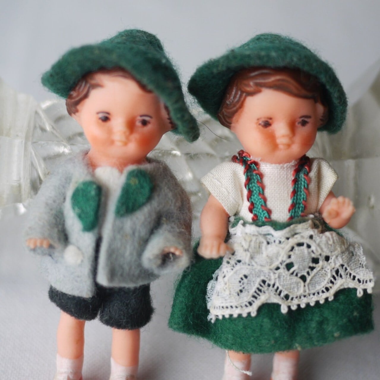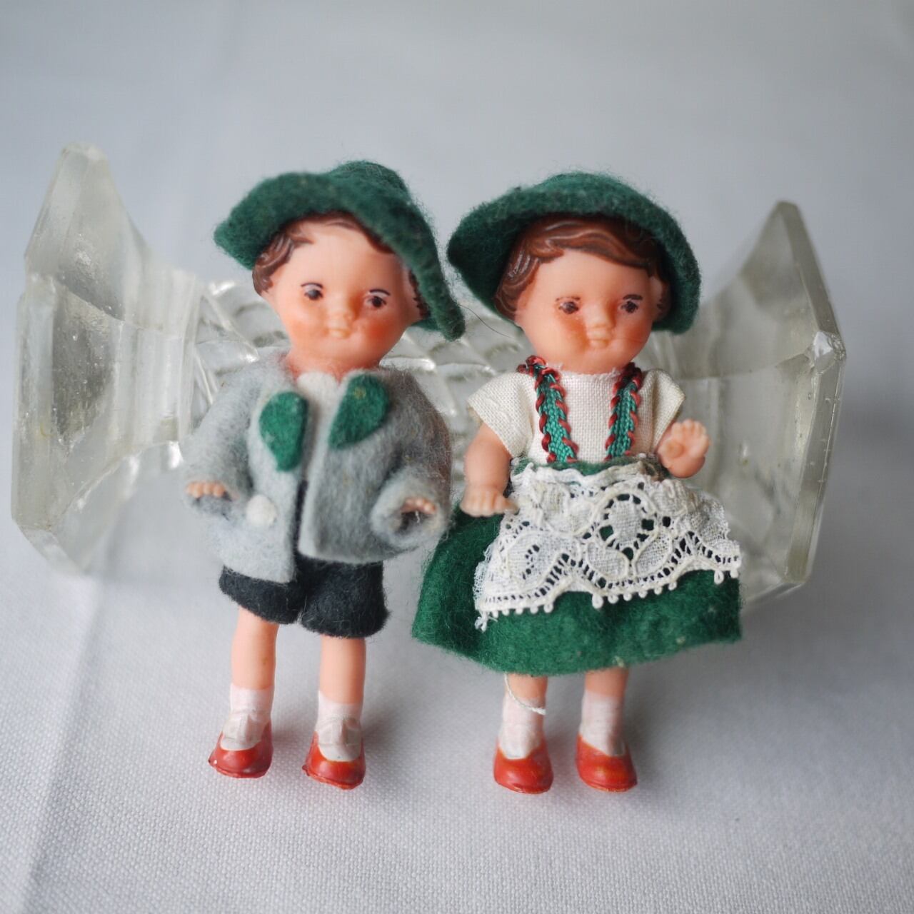 民族衣装ペア ミニドール 緑の帽子 ドイツ