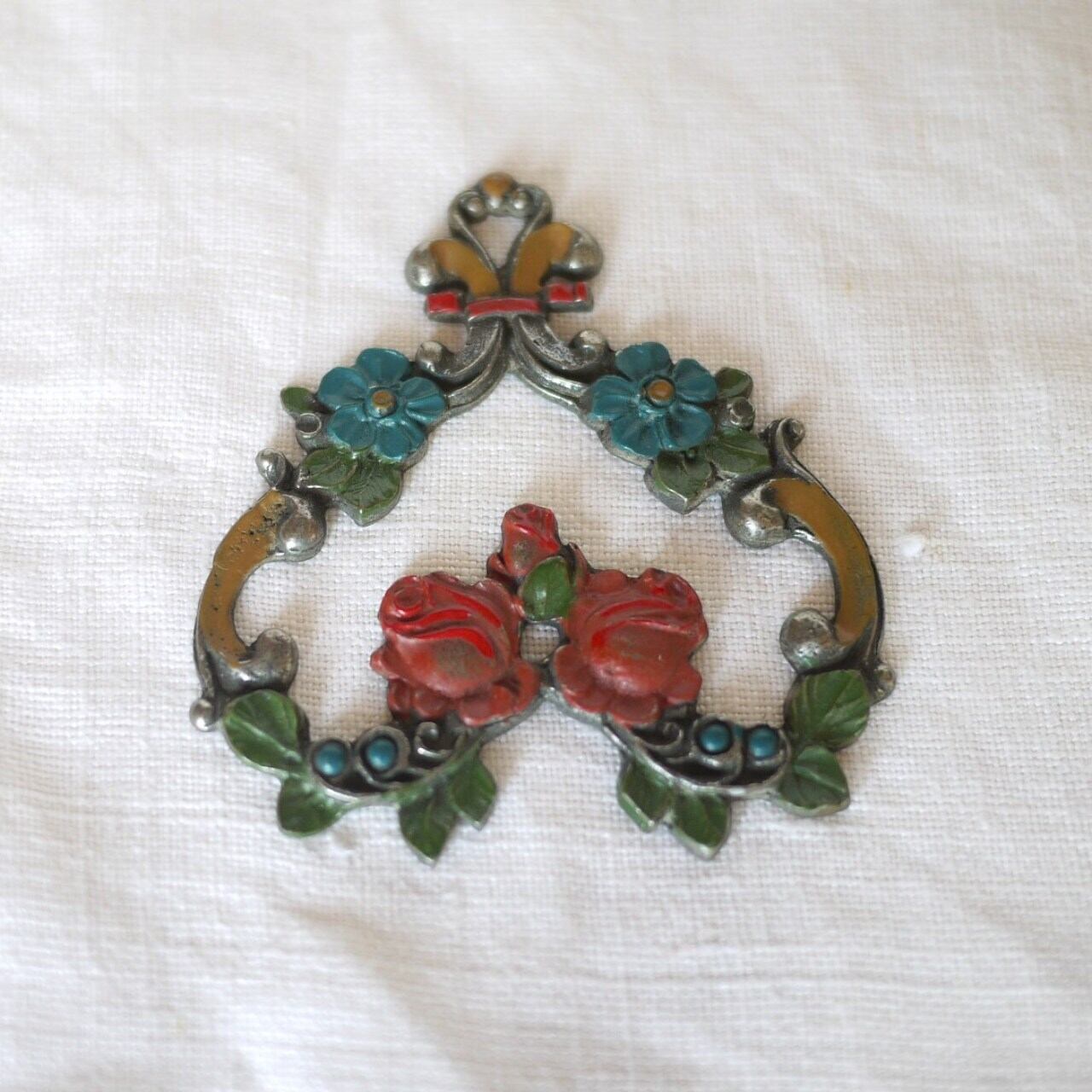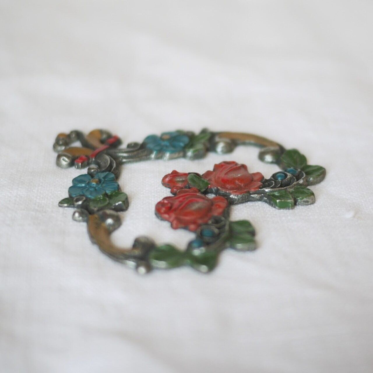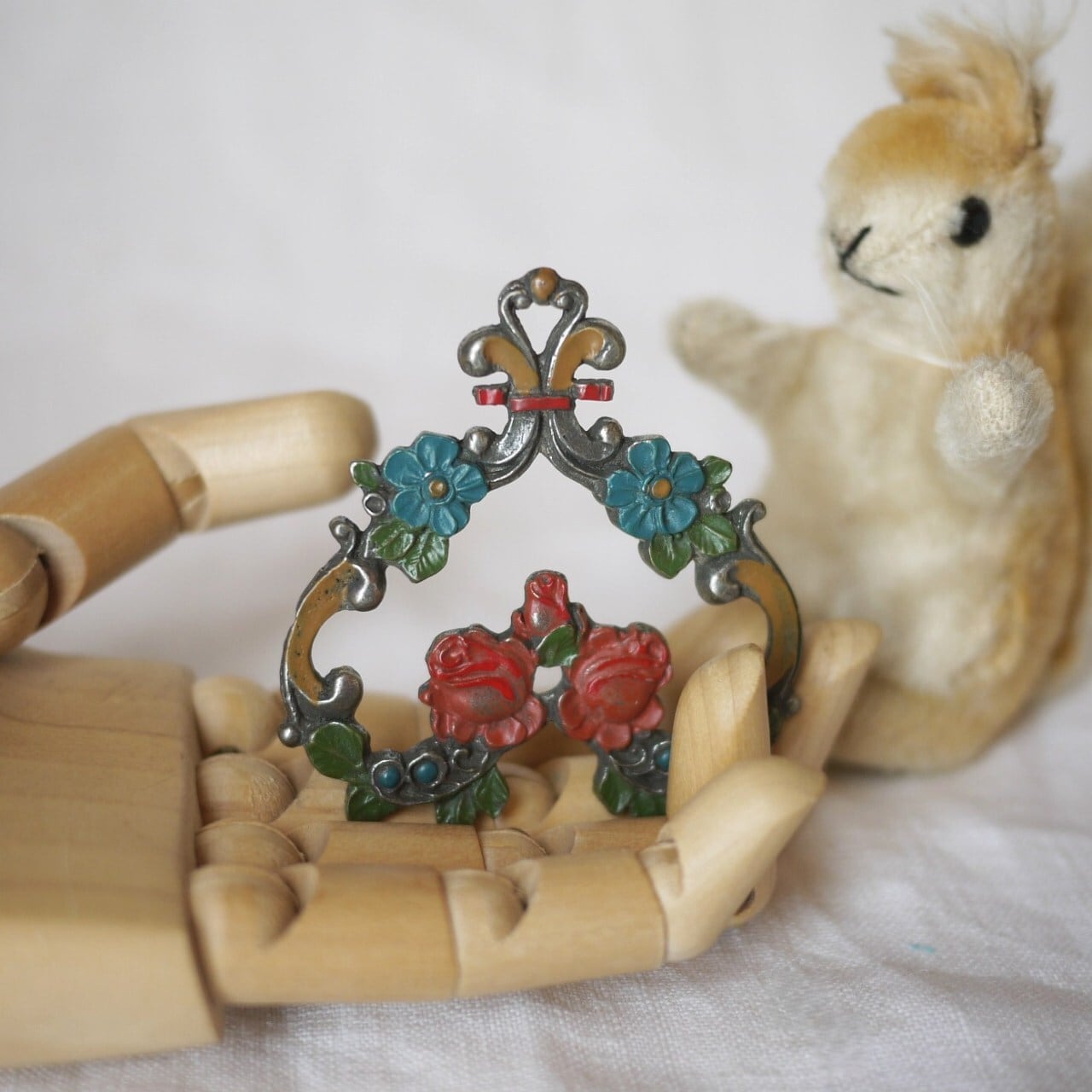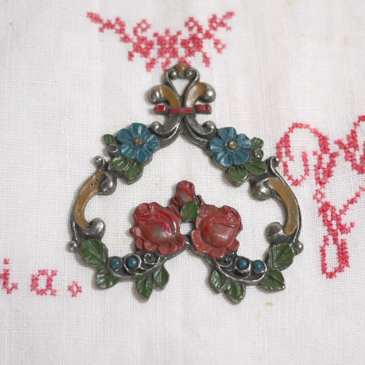 錫の飾り 青い花とバラ オーナメント ドイツ
