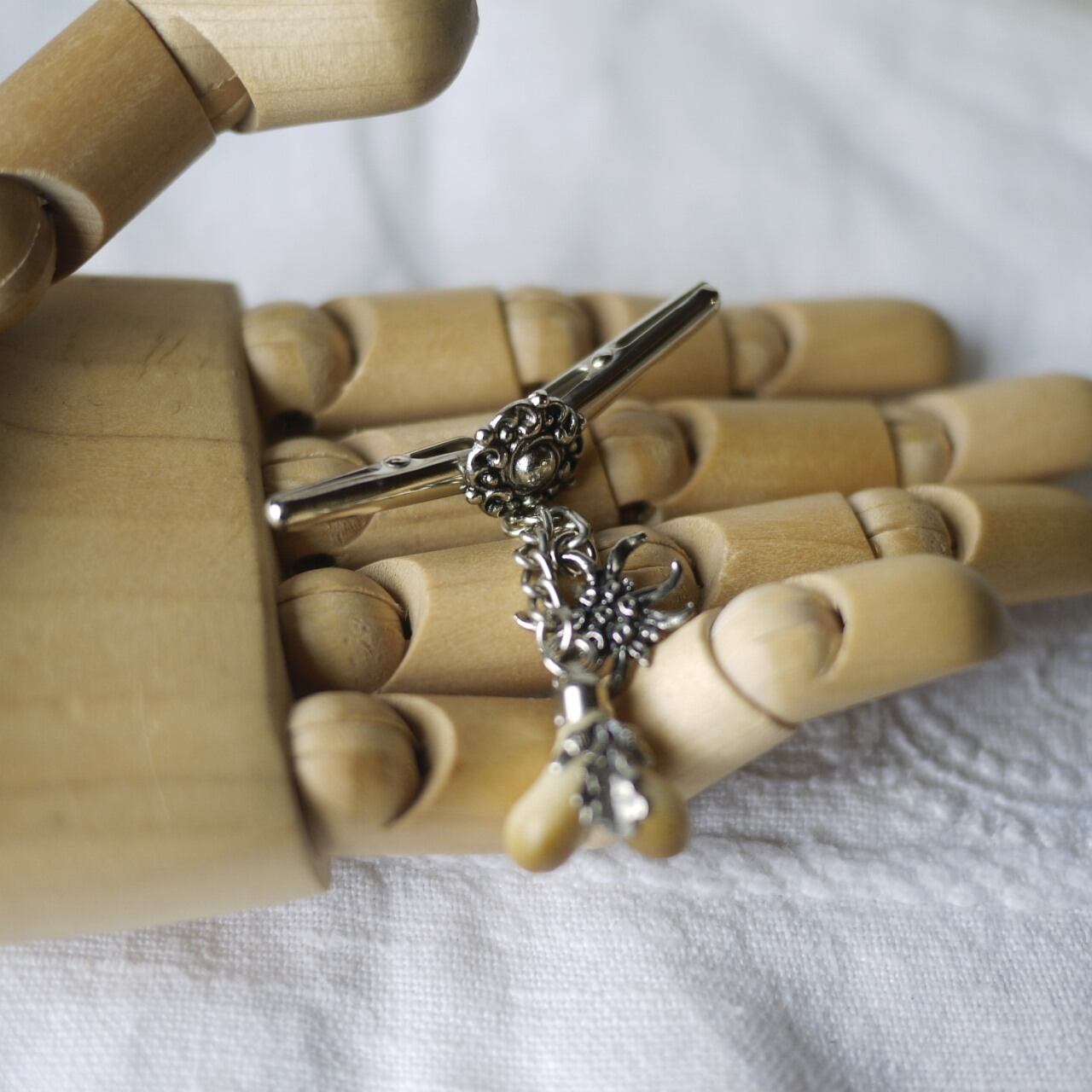 スカーフ止めや袖口のクリップ、ブローチ替わりなど