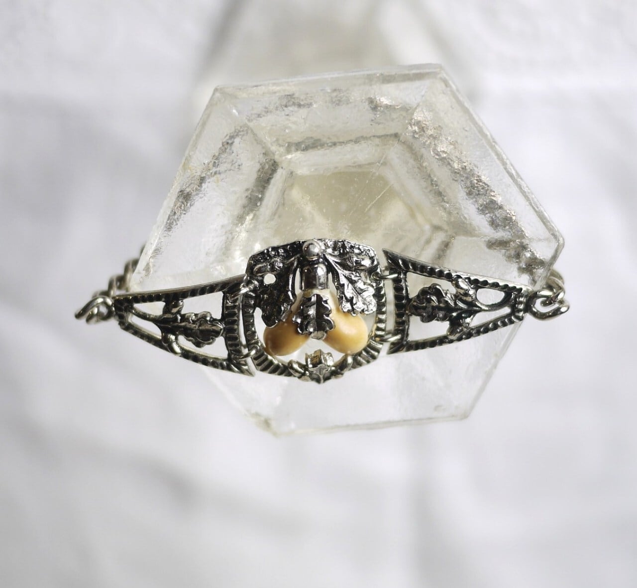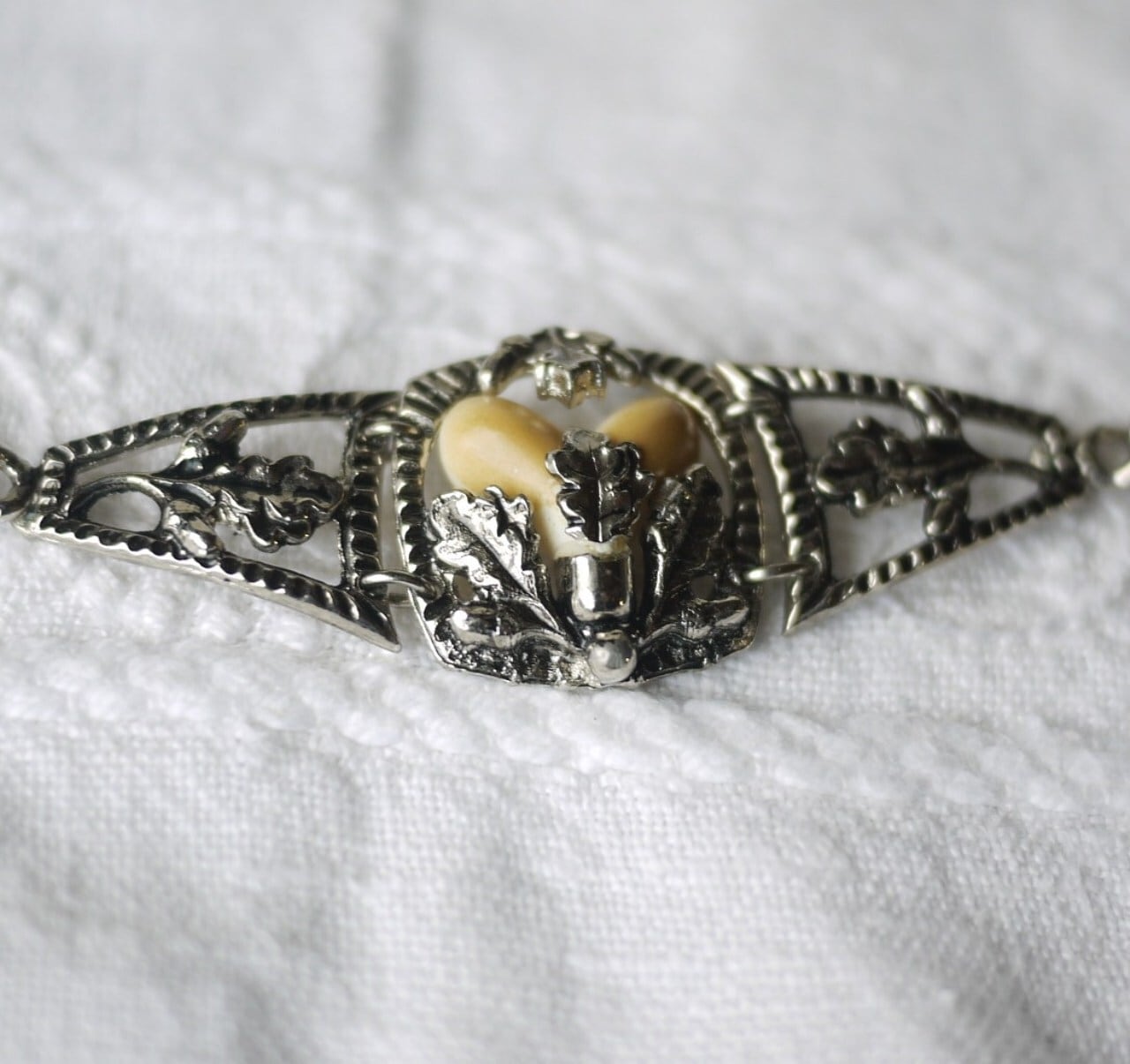 鹿の歯とされる白い珠がオークの実(ドングリ)を表しています。