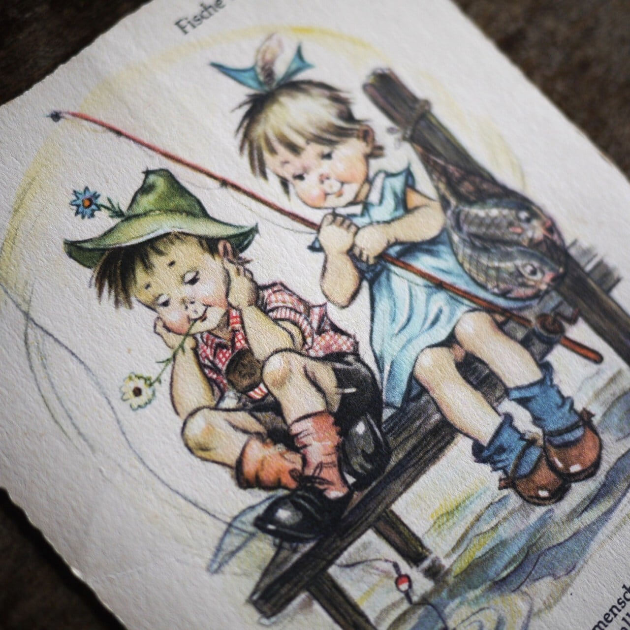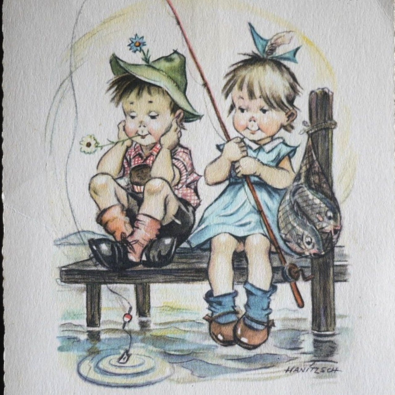 魚釣り ハインリッヒ・ハニッチ絵葉書 ドイツ