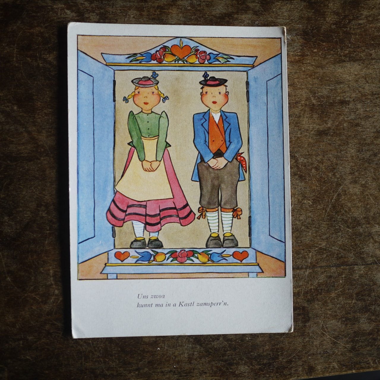 民族衣装の二人 バイエルンモダンアート絵葉書 ドイツ