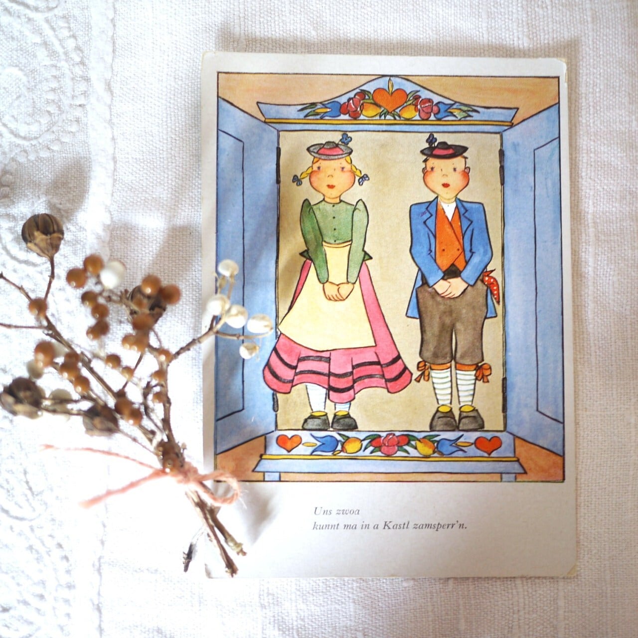 ディアンドルとレダーホーゼンを着たかわいい二人の絵葉書