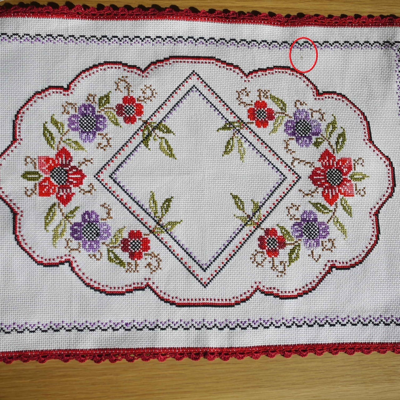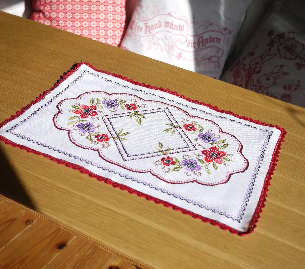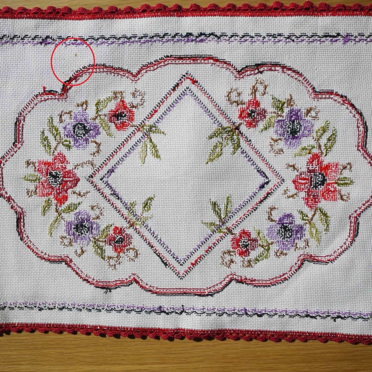 赤い薔薇のクロスステッチ テーブルセンター ドイツ