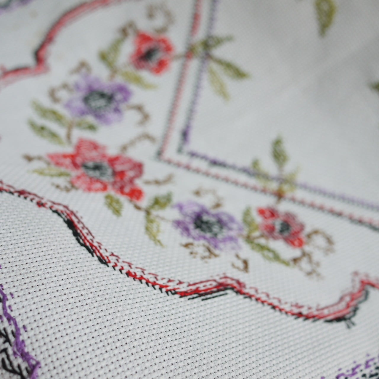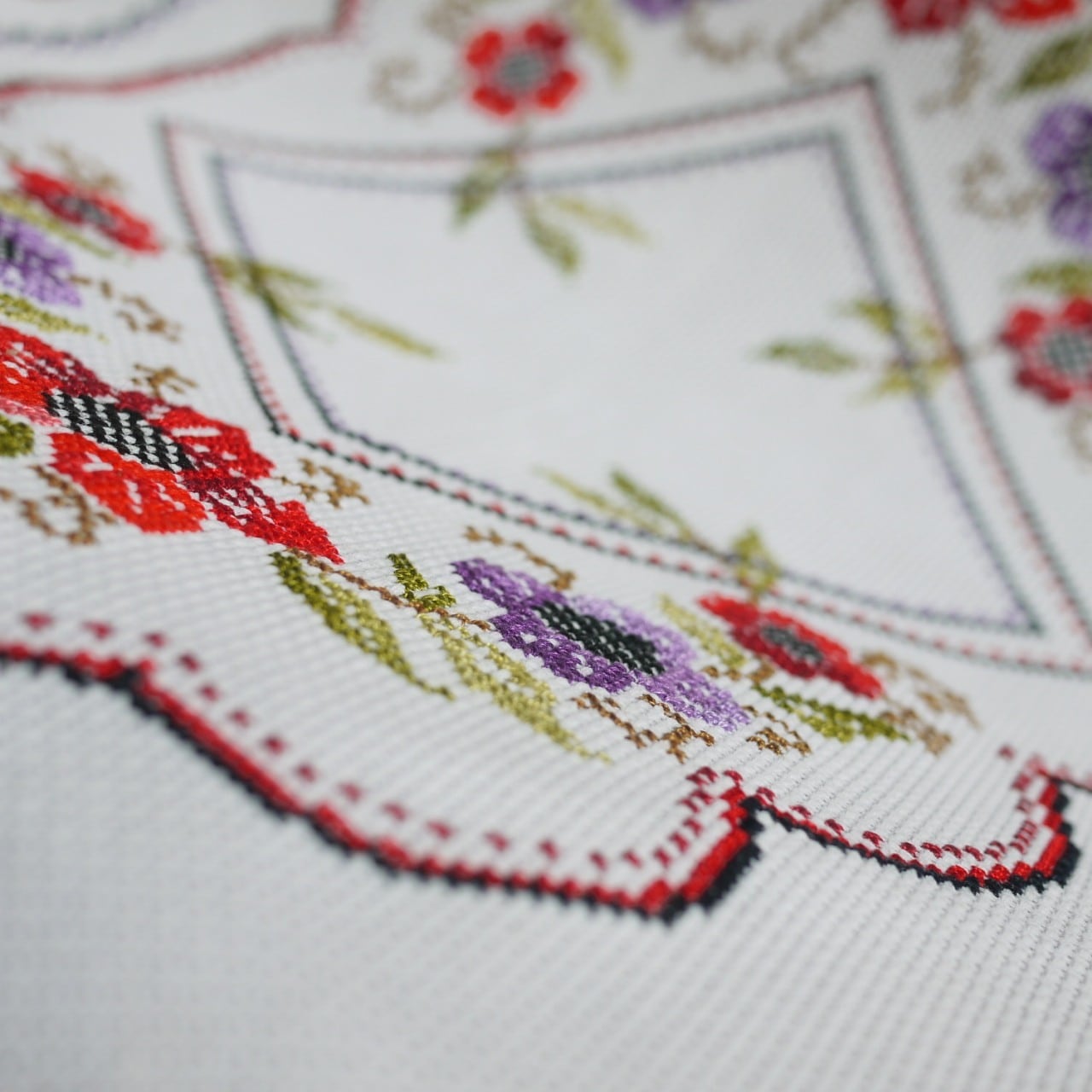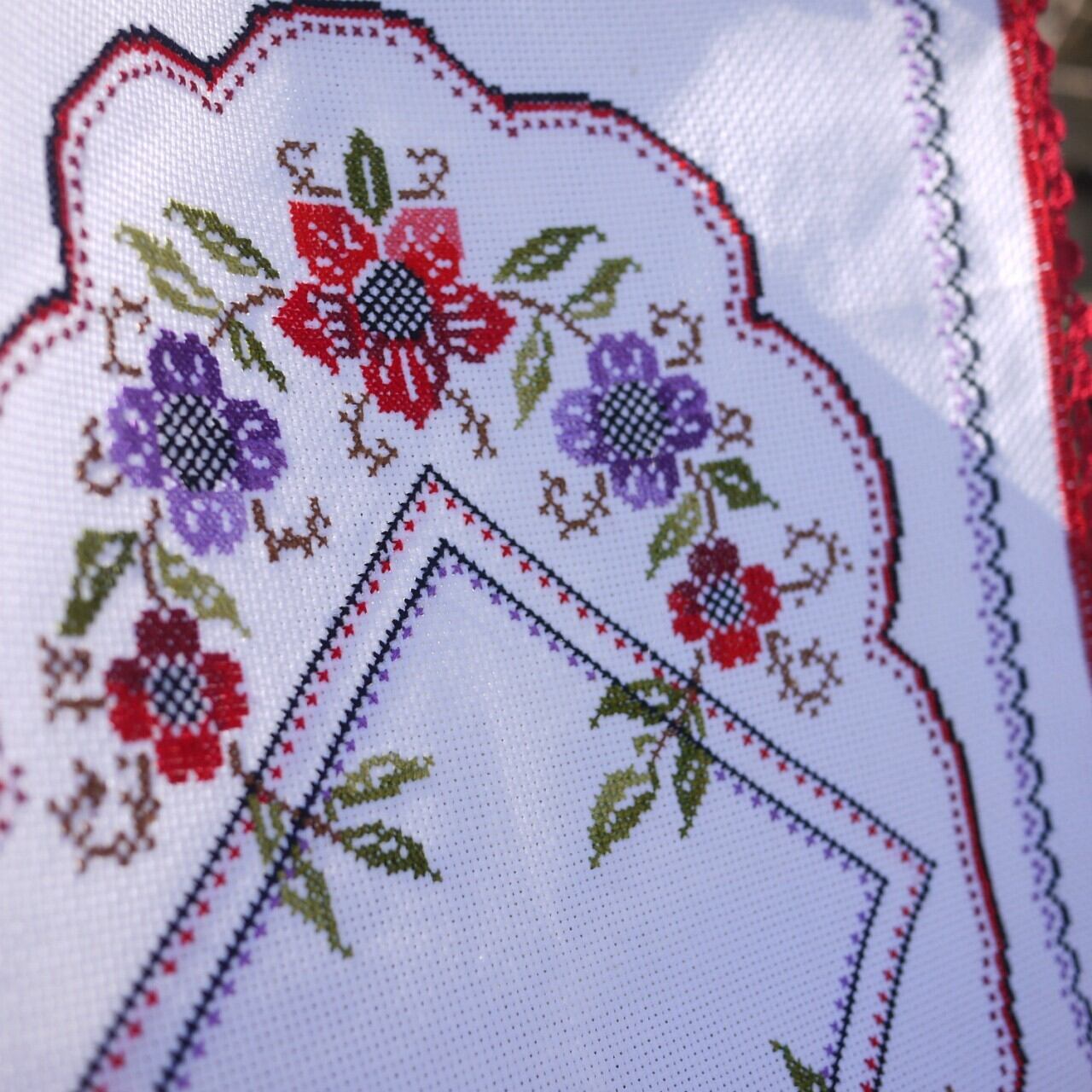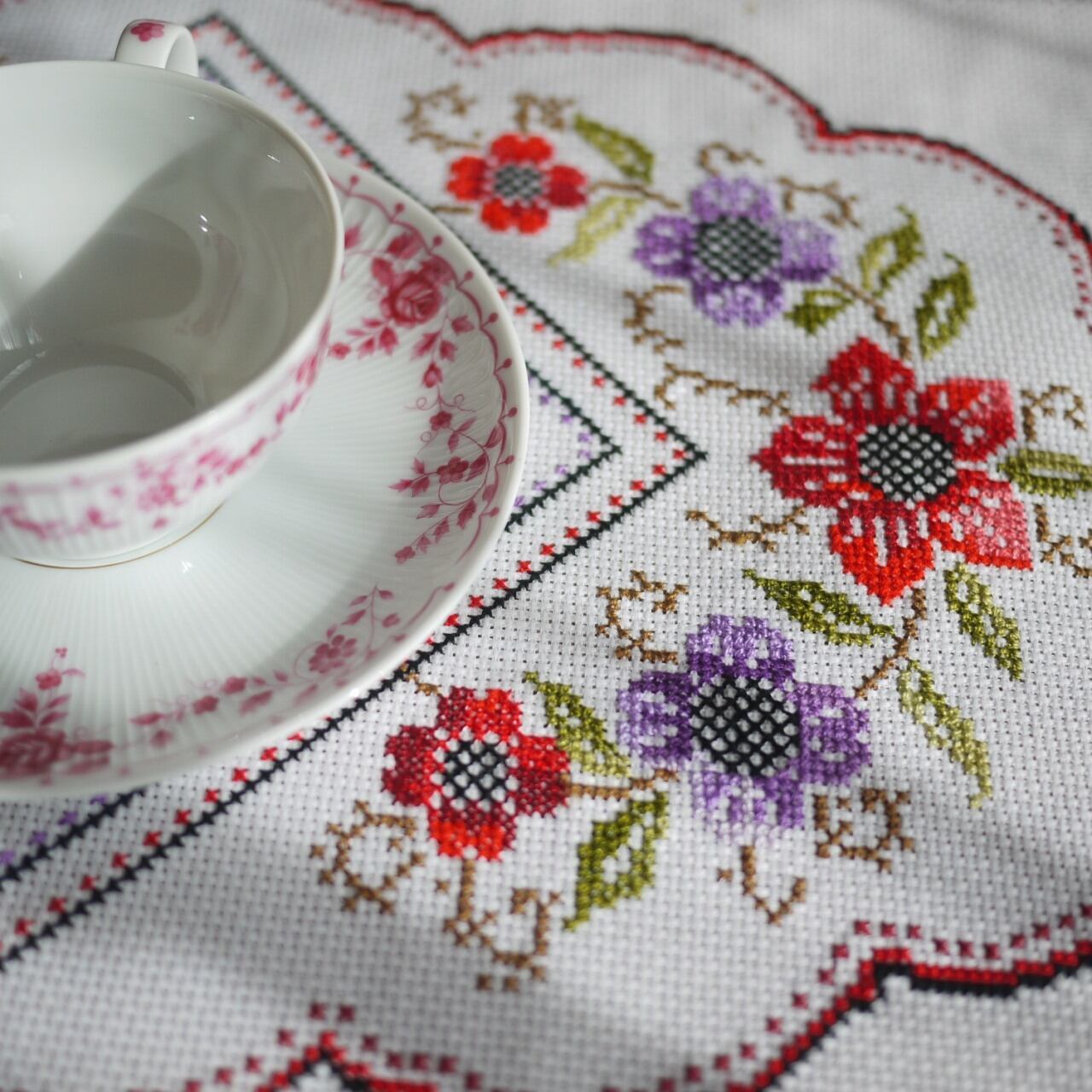 赤い薔薇のクロスステッチ テーブルセンター ドイツ