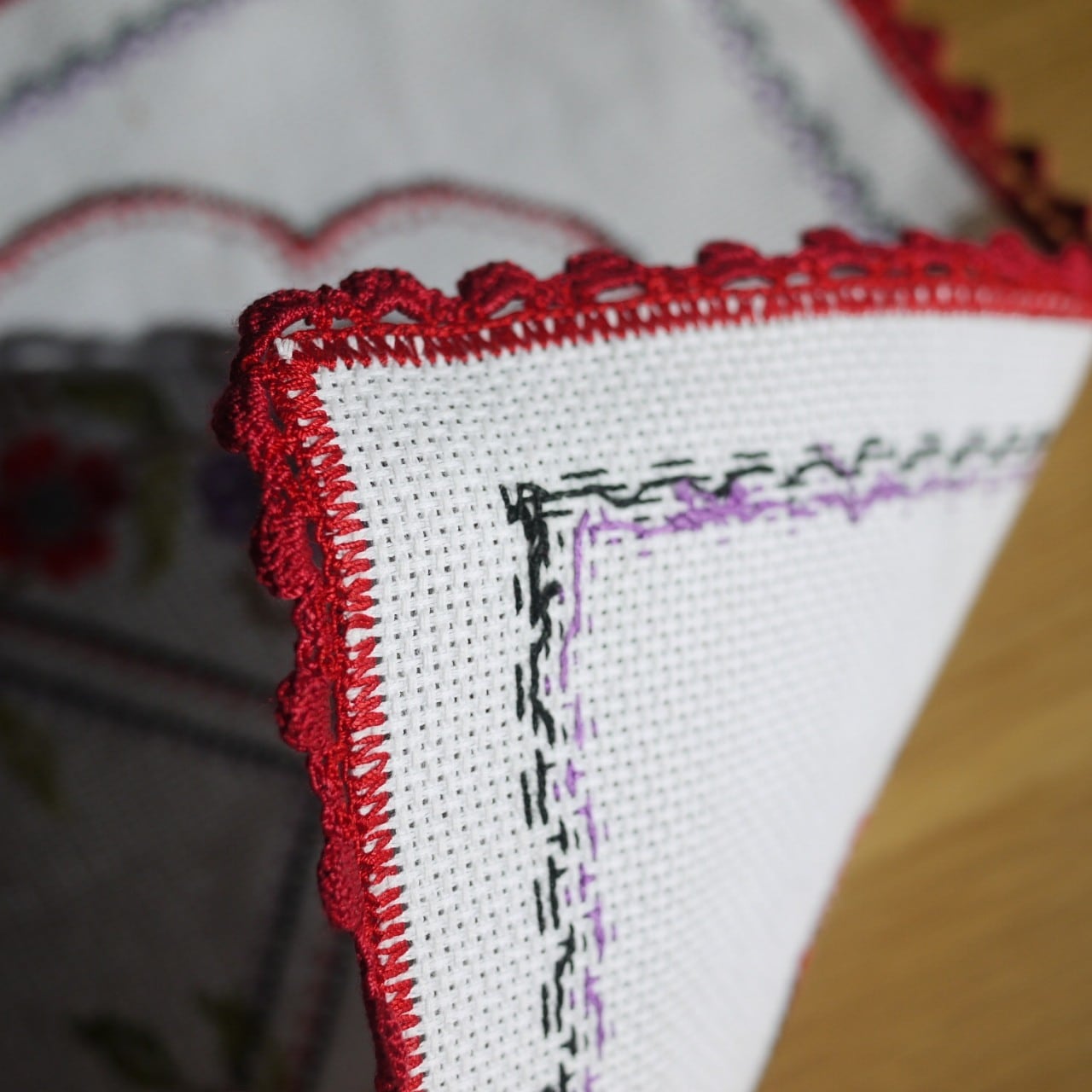 赤いレース糸による縁取りもかわいいです。