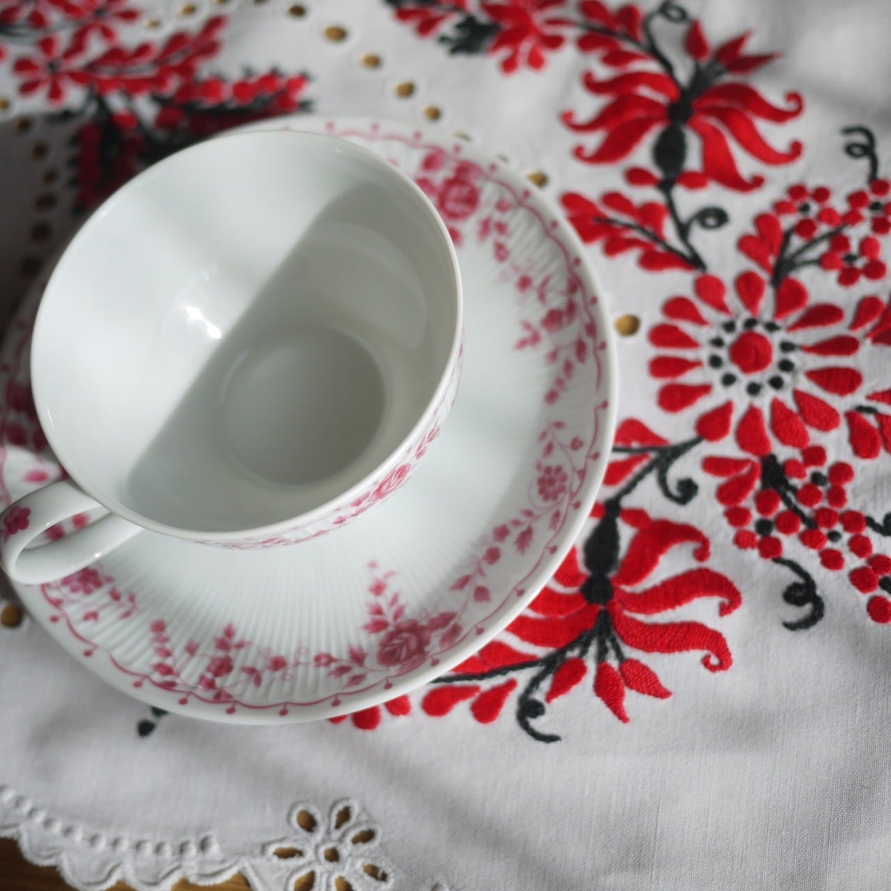 赤と白の刺繍 テーブルライナー ハンガリー
