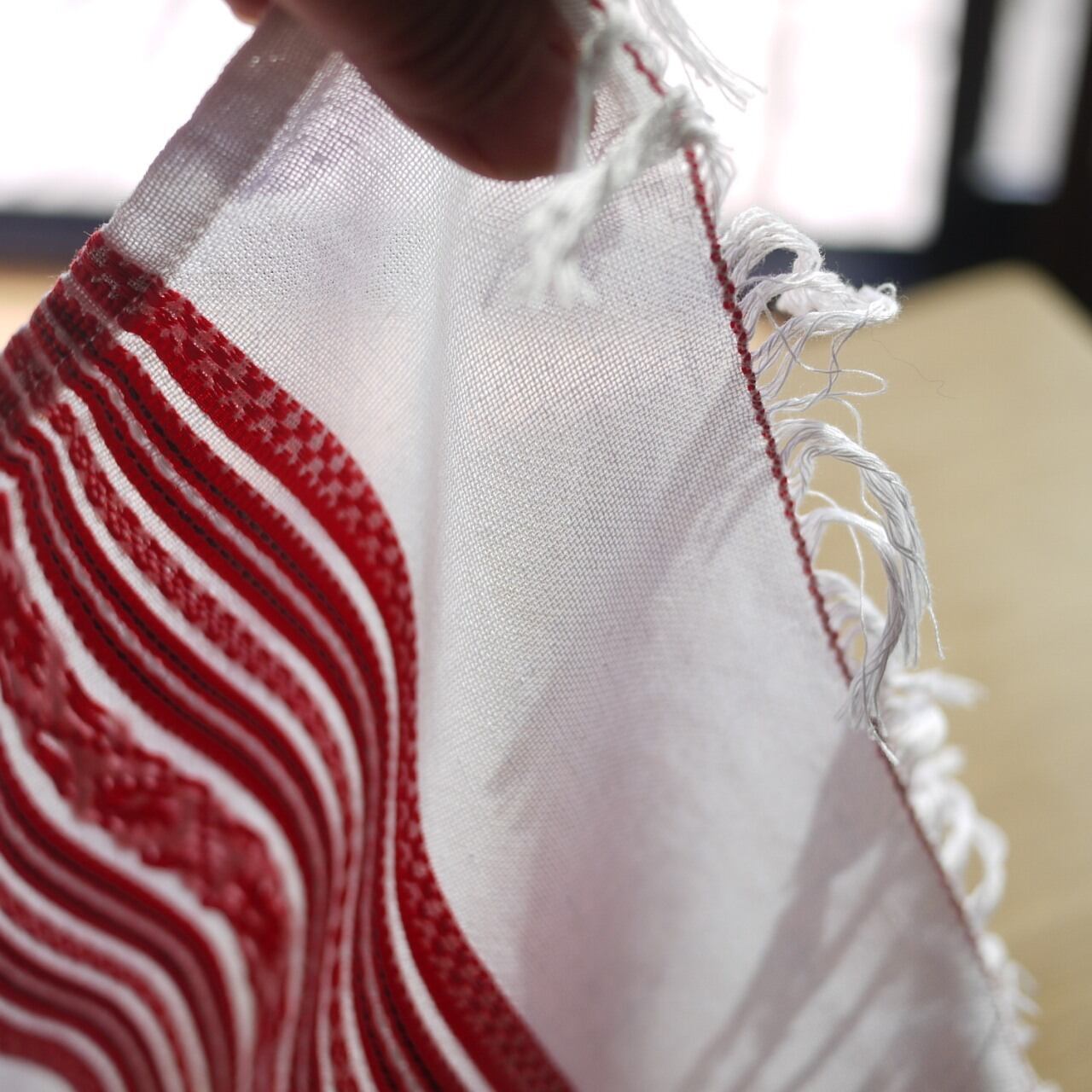 フォークロアな赤と白が印象的です。