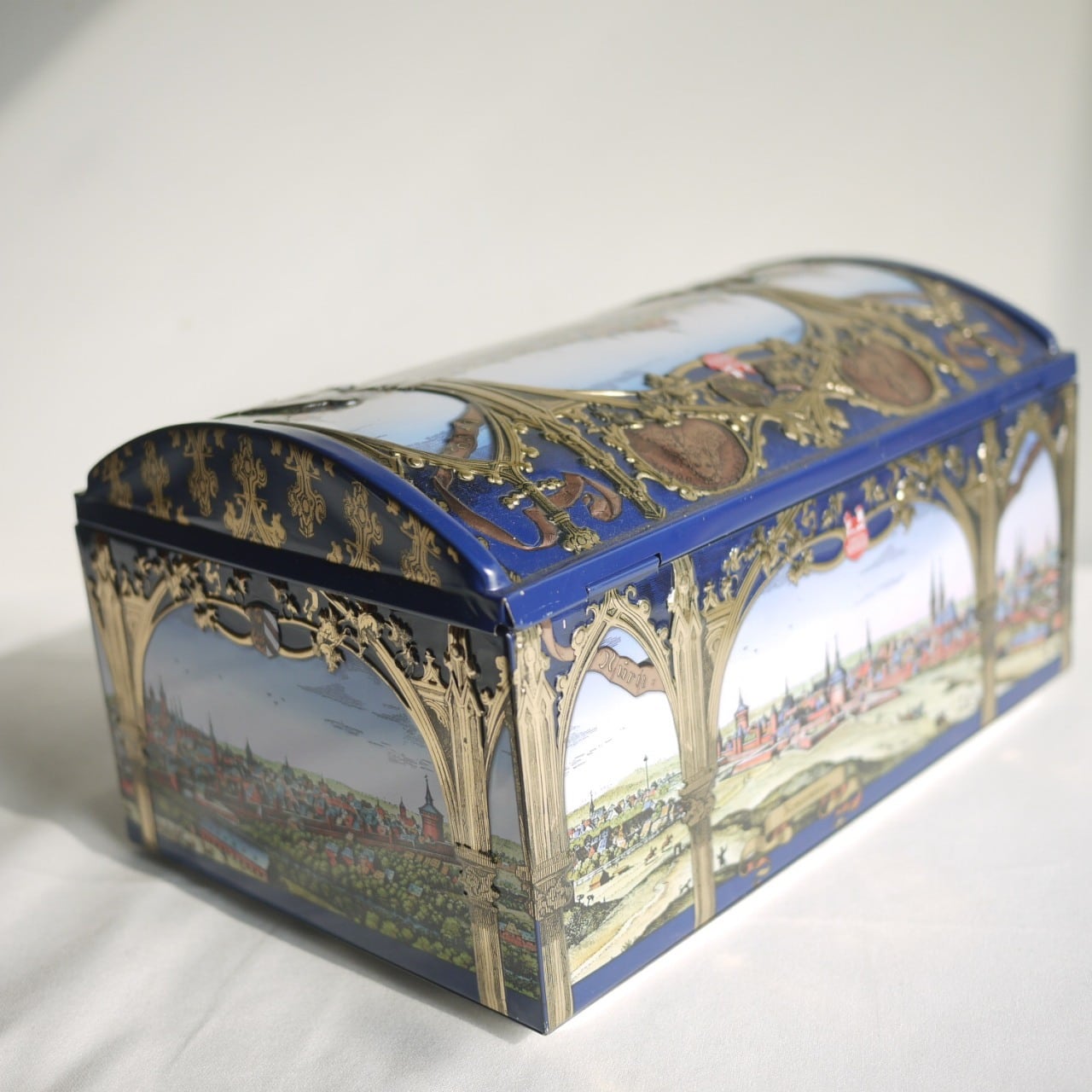 [宝箱缶 クッキー缶 青 TINCAN ドイツ]
