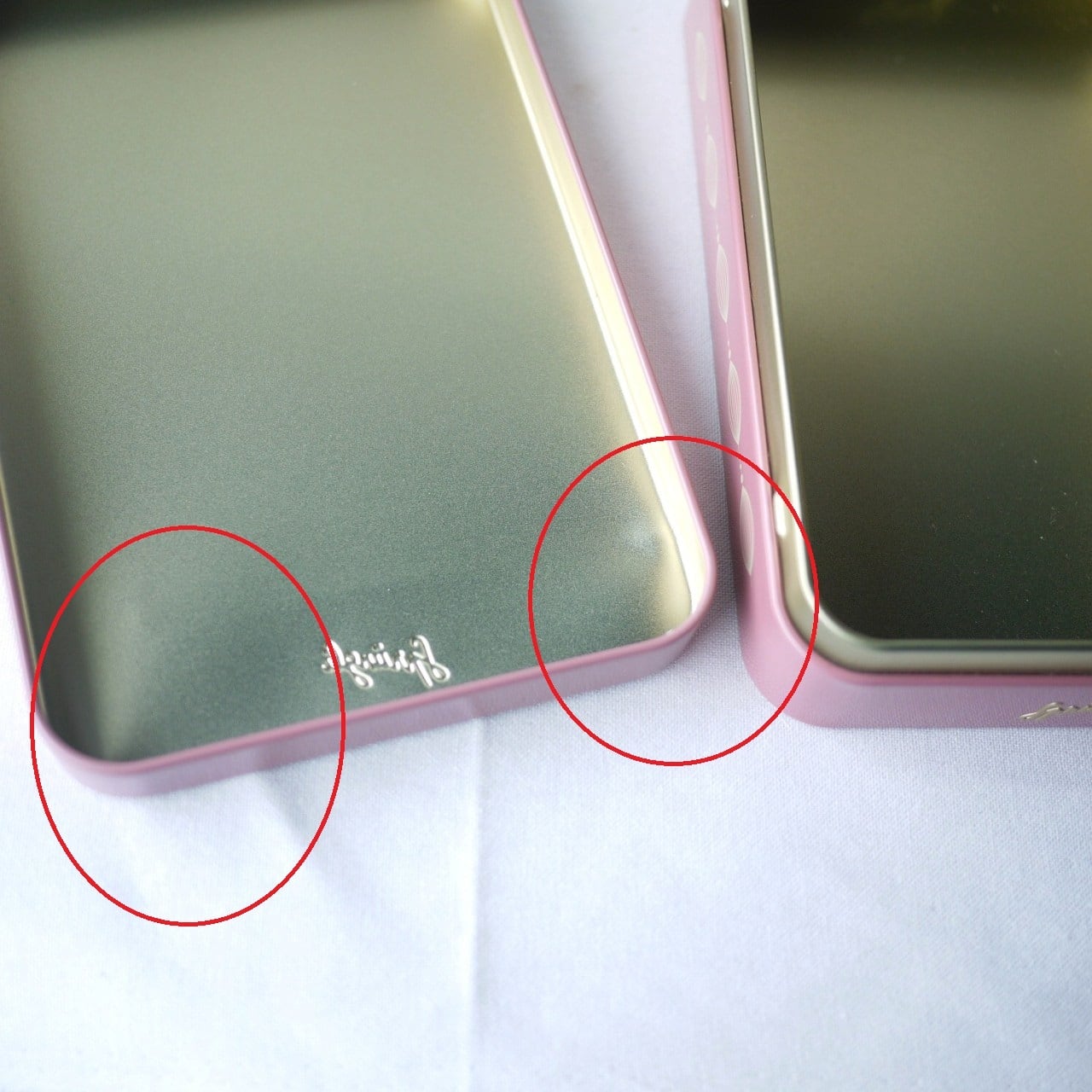 ふたに傷、へこみキズがあります。赤丸