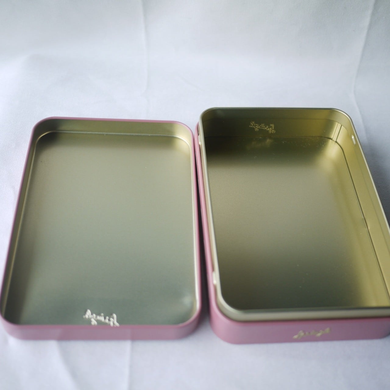 シックな金色文字小さな文字のおしゃれな缶。