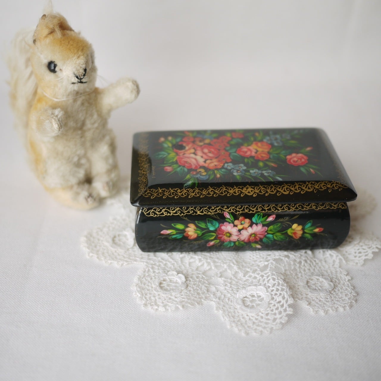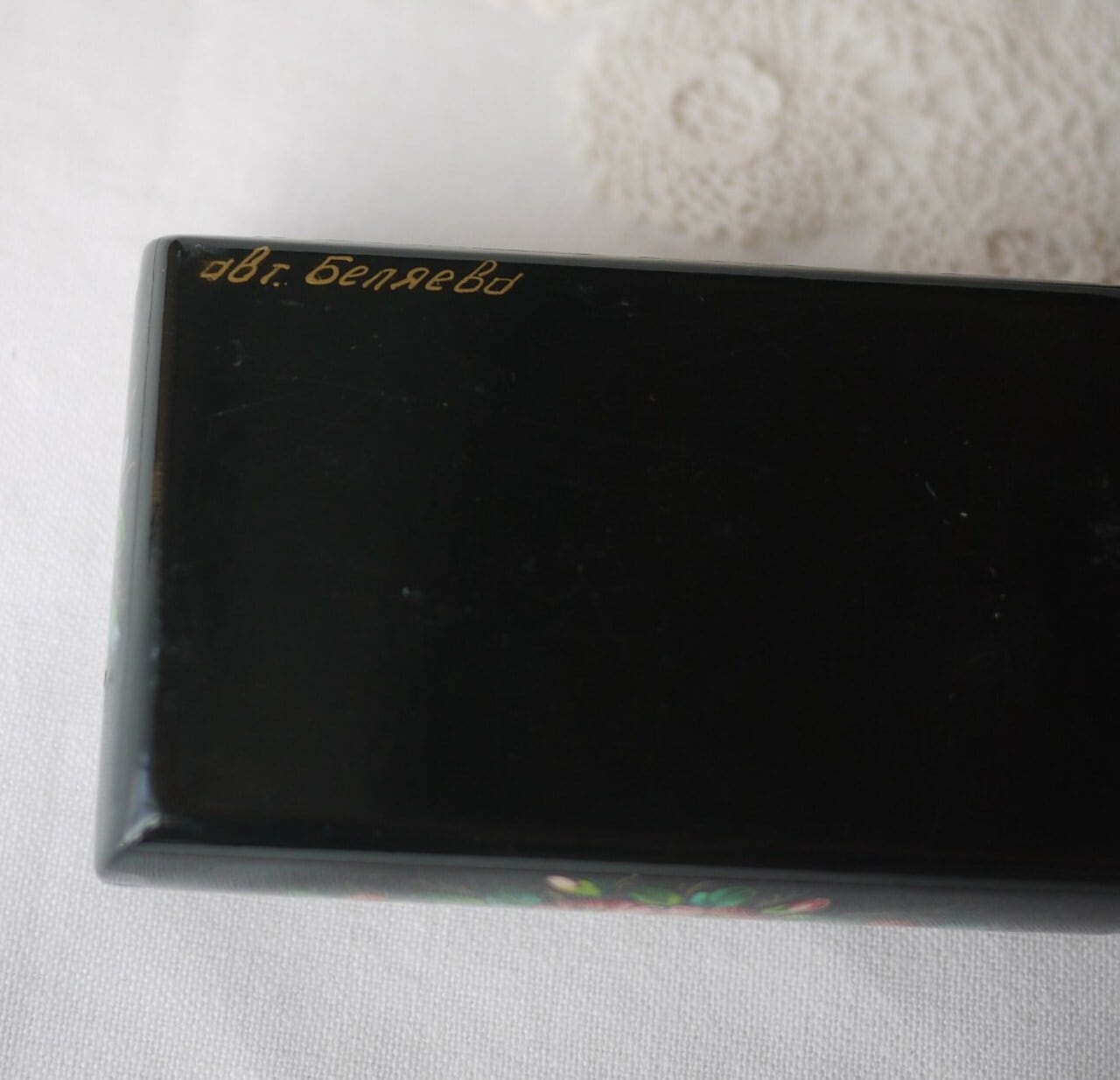 ハンドペイントの技法で、蓋上と底面にサイン入り。