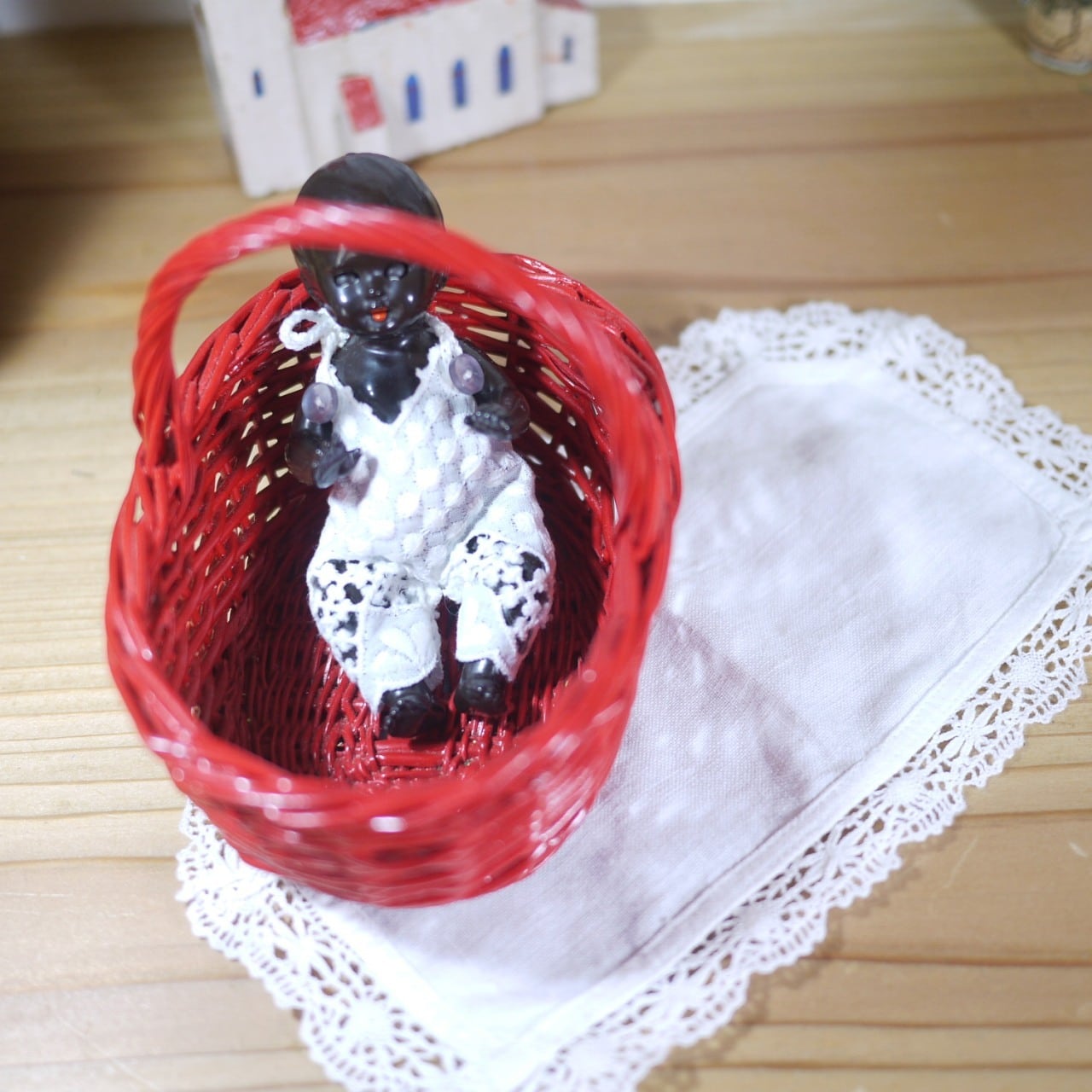 [赤いラタンバスケットとブラックベビー ドイツ]