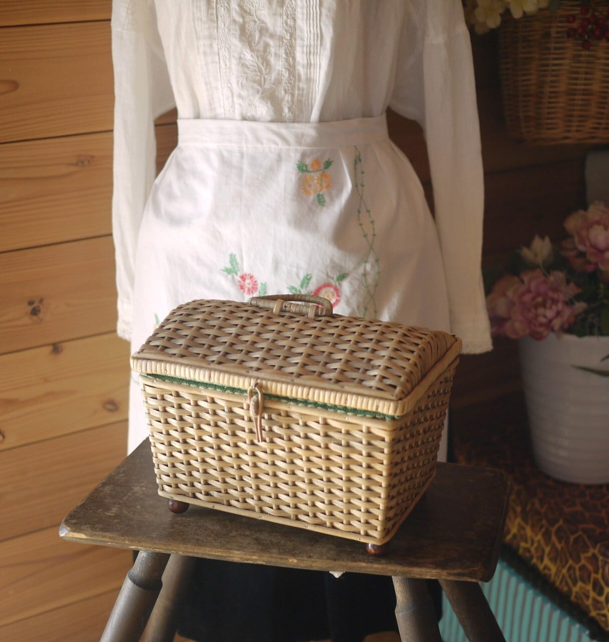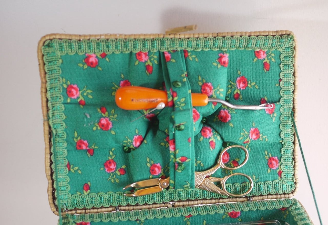 籐を編んだ裁縫箱ソーイングボックス