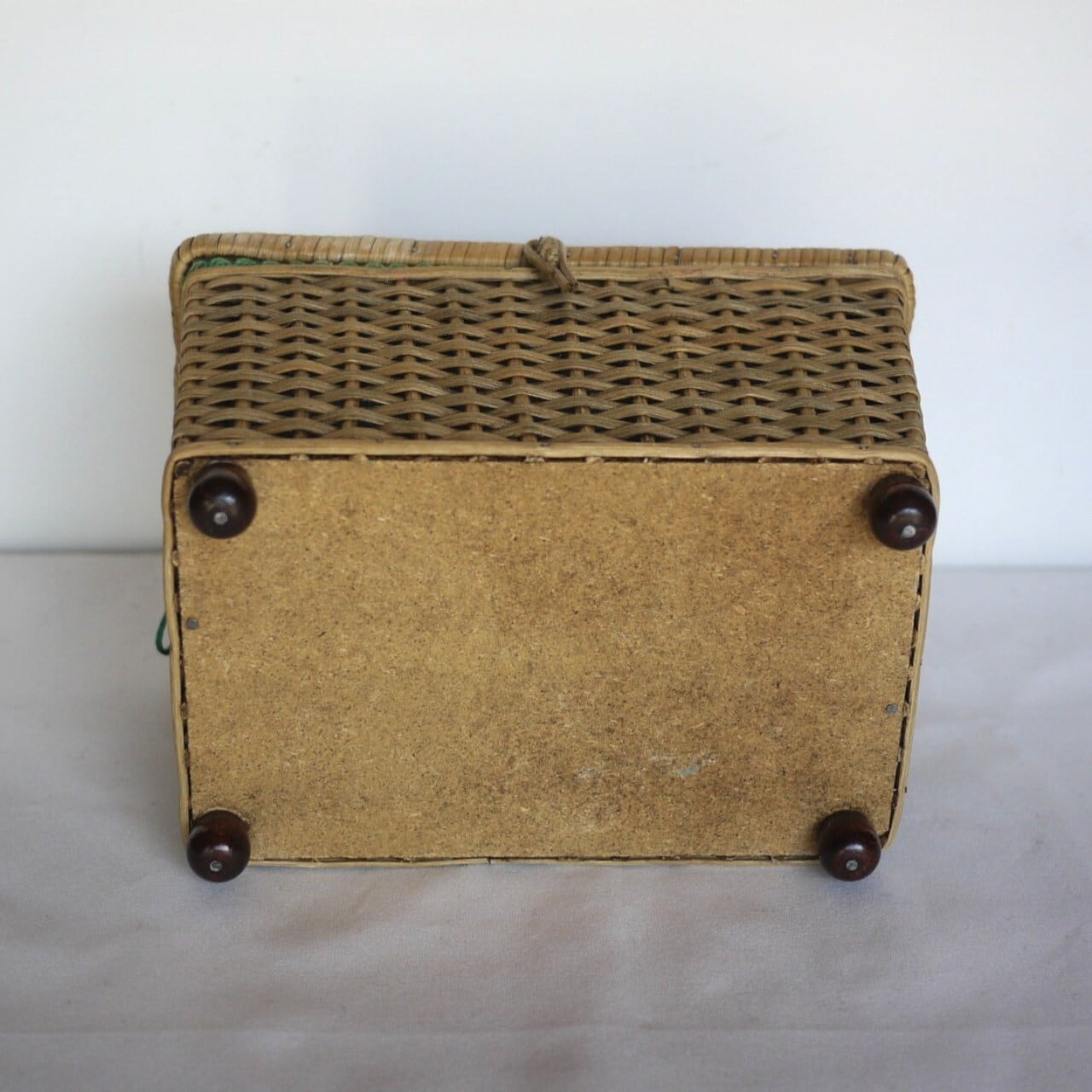 籐製ソーイングボックス 布張裁縫箱 ドイツ