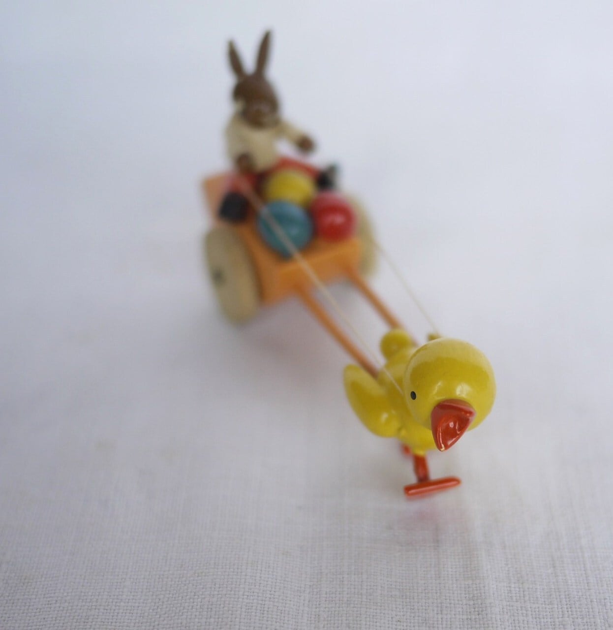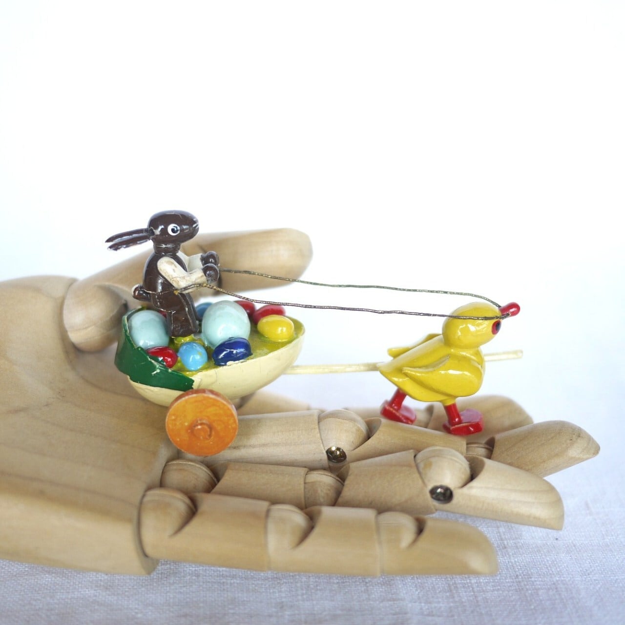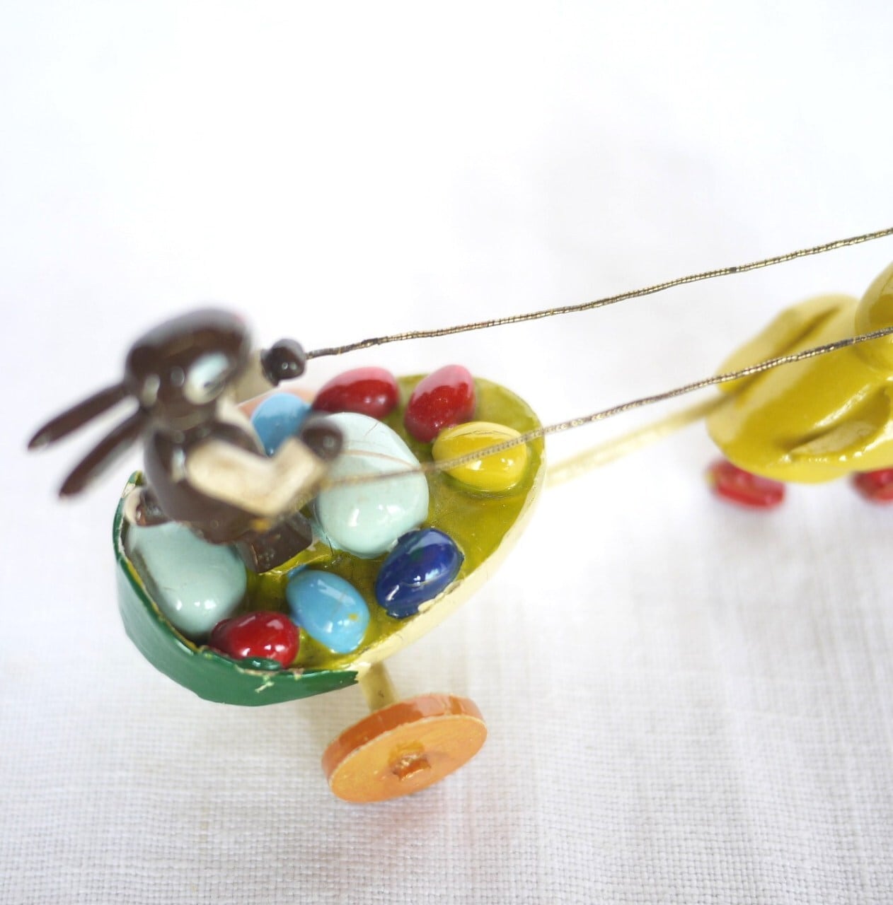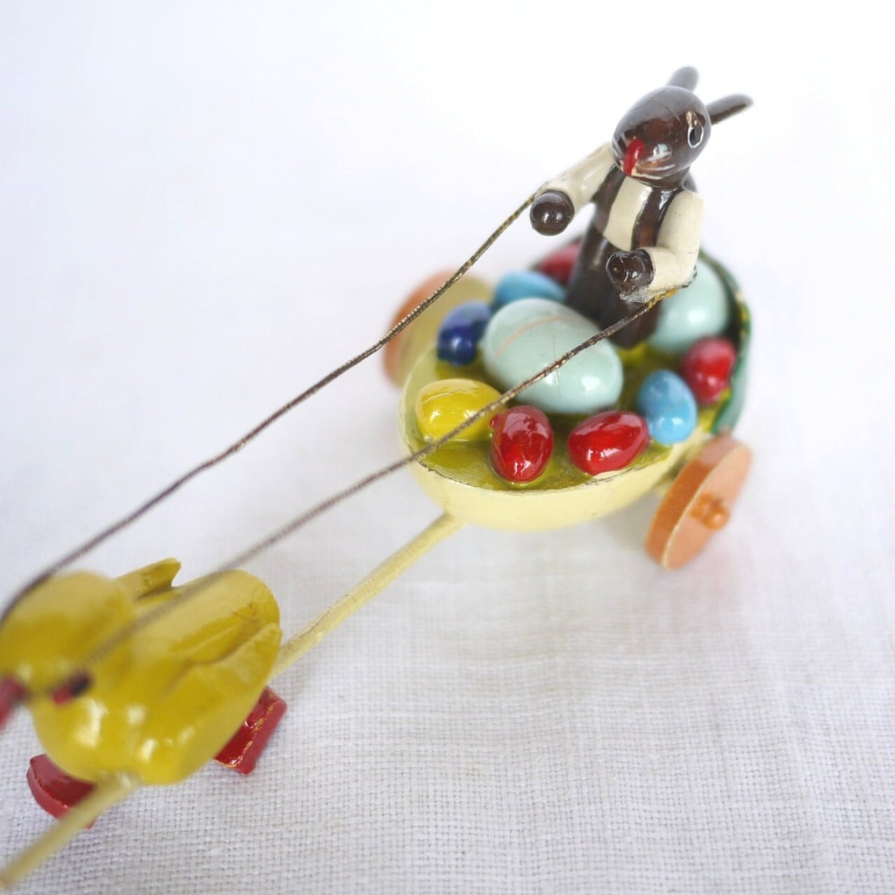 イースター木製オーナメント ひよことウサギの卵車 ドイツ