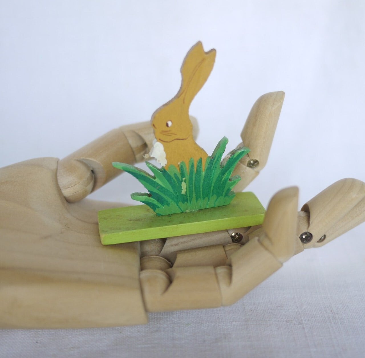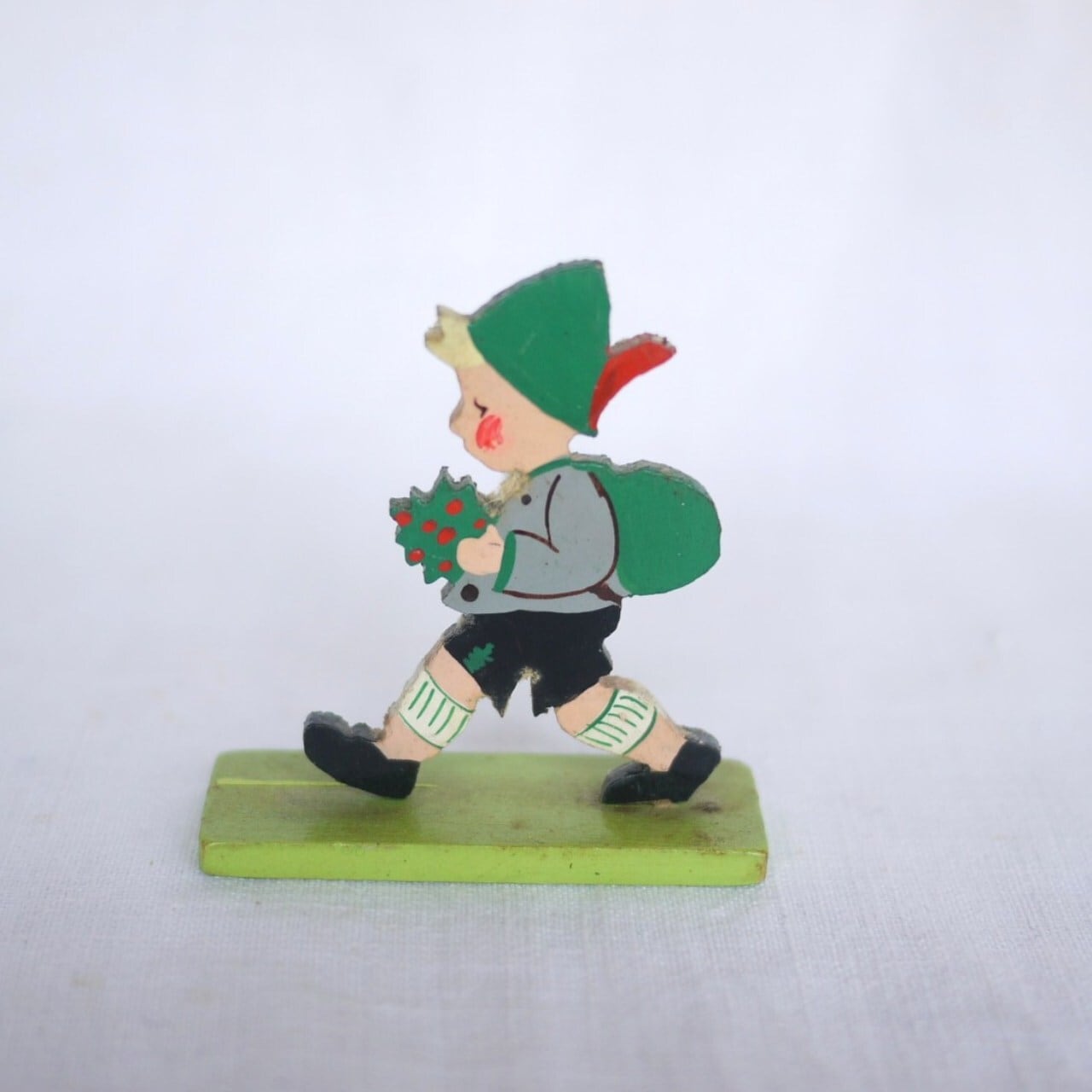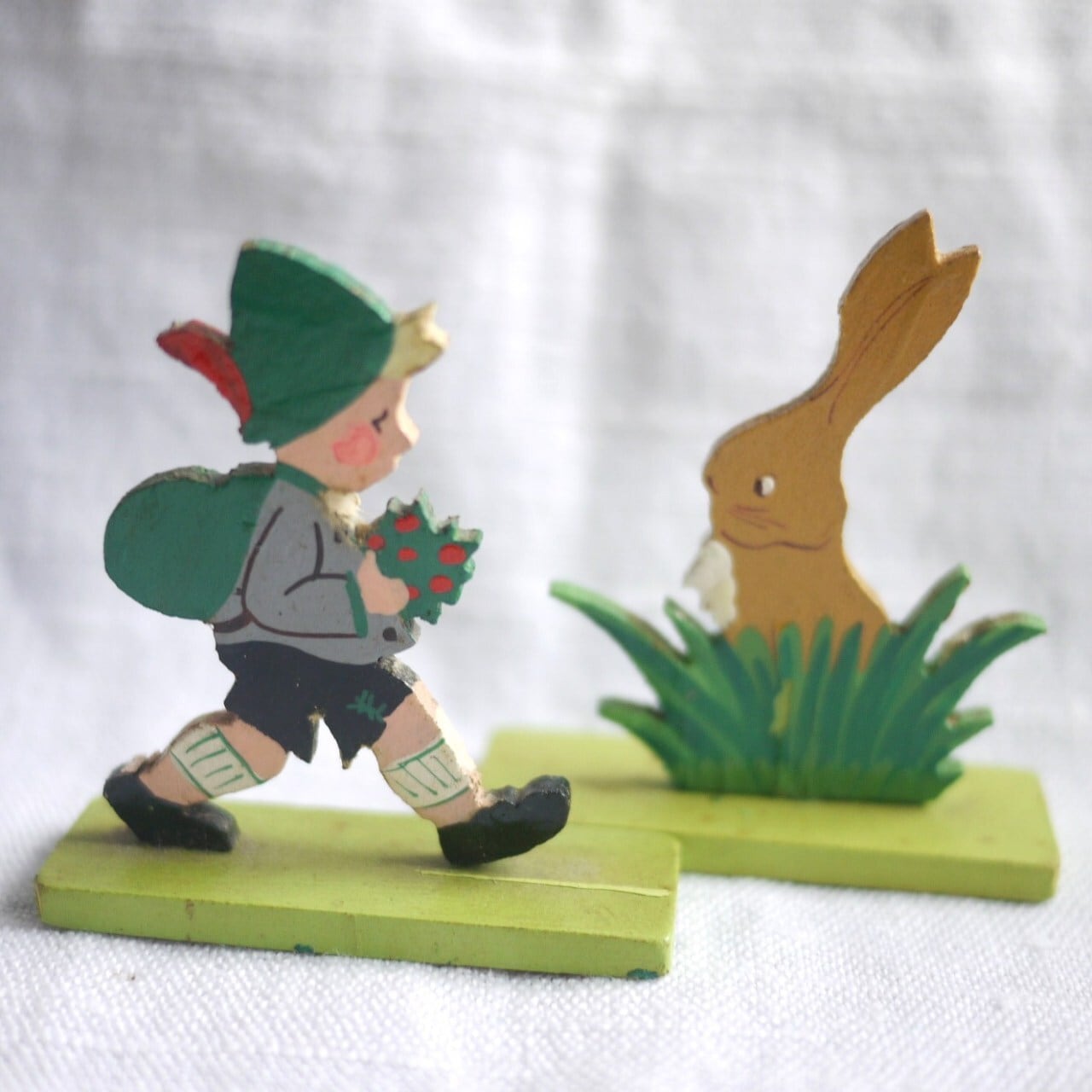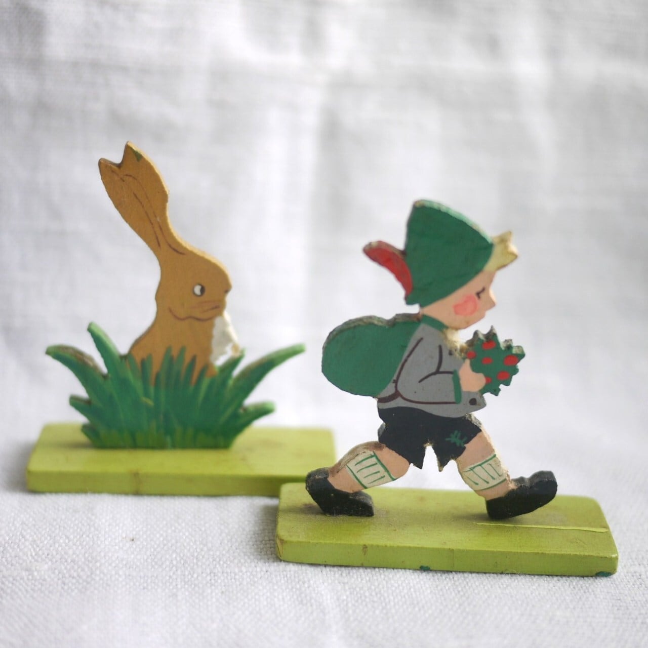 ハイキングする少年とうさぎ 板絵2P Märchen-Holzbild ドイツ